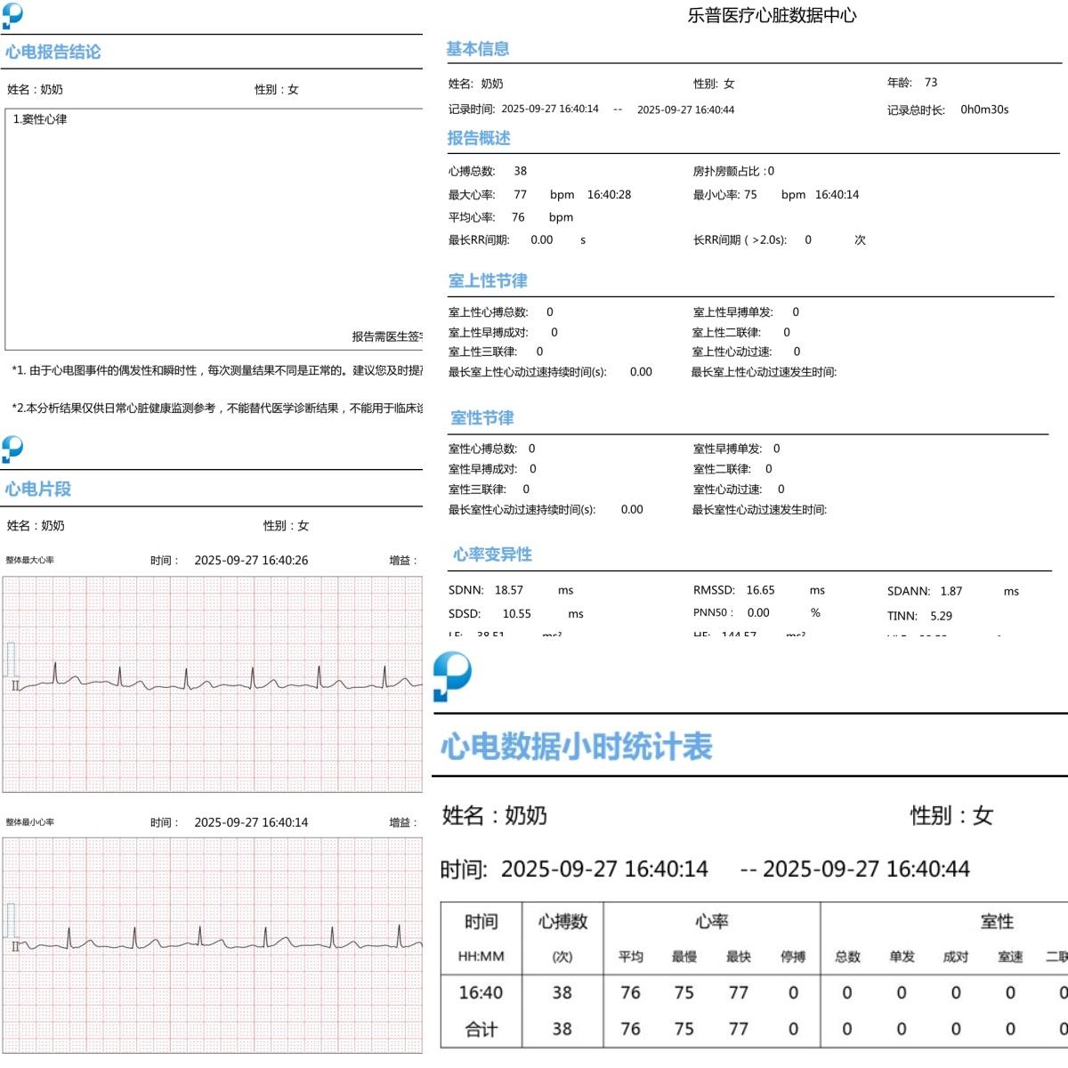 特别提一下,早搏、房颤检测,房颤是中风的主要元凶之一,发作没有规律,甚至没有症状,等到发现时往往为时已晚,目前只有乐普做到了。
