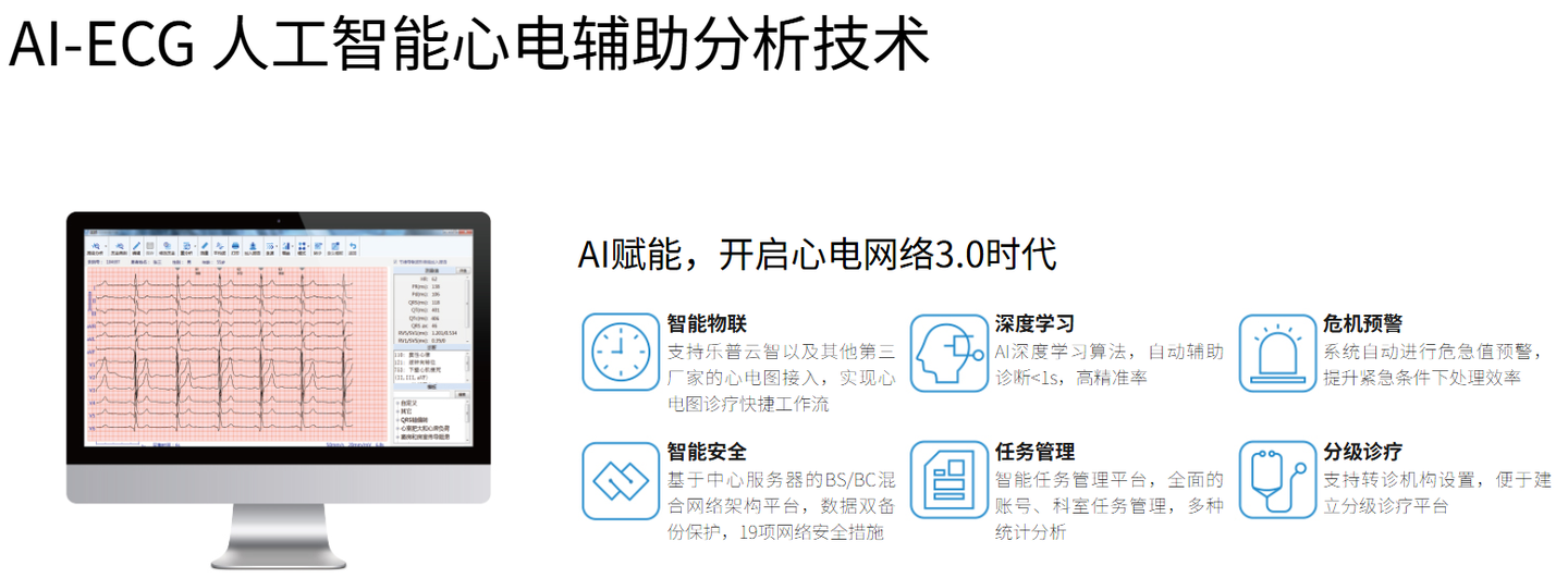 它是国内首款获批注册,目前唯一同时获得NMPA批准FDA批准和CE认证的人工智能心电产品。