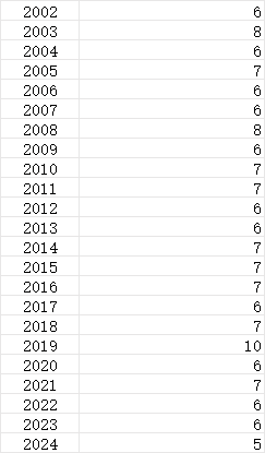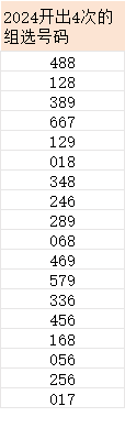 通过数据对比,我们可以看到除了2024年,其他年份一定会有某个组选号码开出的次数大于等于6次,可见2024年还有机会在已经开出的组选号码中继续开出重复的组选号码。