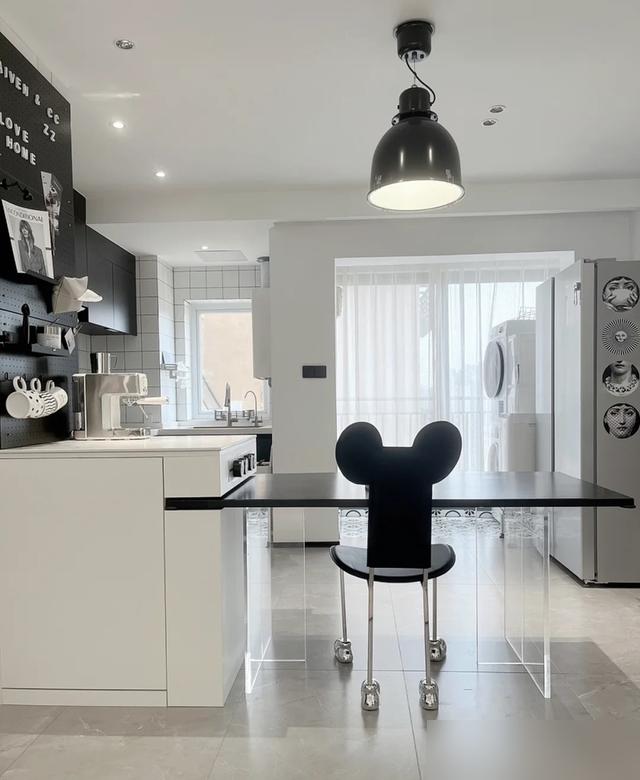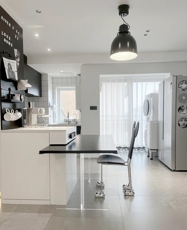 餐岛一体的设计尤其巧妙,平时用餐简洁,聚会时拉开变长桌,一物多用省空间。