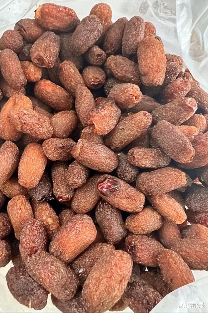 选八九成熟枣,烫红晒软,煮后文火烘烤,历时十天方成。