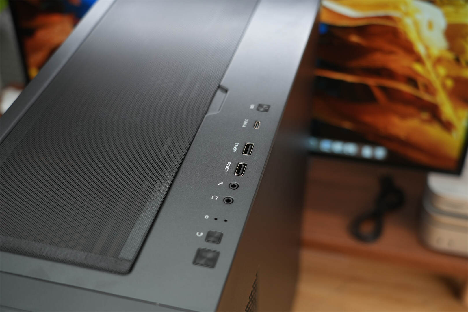Z10 DS机箱I/O接口置于顶部,配备双USB 3.0、USB 3.1 Type-C,含LED按钮及独立耳机、麦克风接口,适配第三方设备。