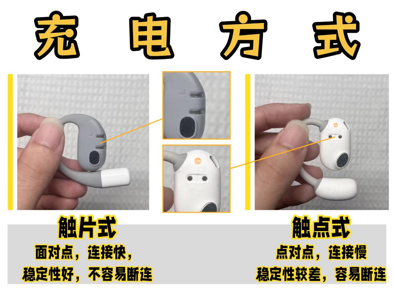 耳机还有很实用的功能,耳机配备触片式充电,可以让充电速度更快更稳定,接触不良的问题也会减少很多;而且虹觅自主研发的防漏音模式,只需要按三下功能键就可以打开,可以很大程度减少开放式耳机漏音问题。