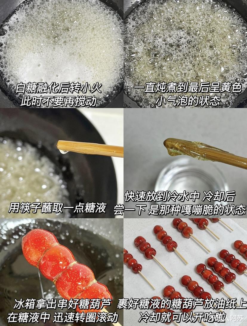 如何判断糖浆是否熬好了呢?这里有一个非常简单实用的方法。准备一碗凉水,用筷子蘸取少许锅中的糖液,迅速放入冷水中冷却。然后取出筷子上的糖块,放入口中尝一尝。如果糖块吃起来是“嘎嘣脆”的口感,不粘牙,就说明糖浆的火候刚刚好。这个状态下的糖浆,裹在山楂上才能形成完美的脆壳。