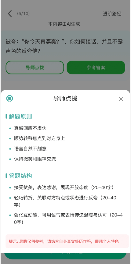 • 避坑: 越是突发场景(比如突然被领导点名、紧急敬酒),越要靠这种互动式场景模拟来克服紧张。