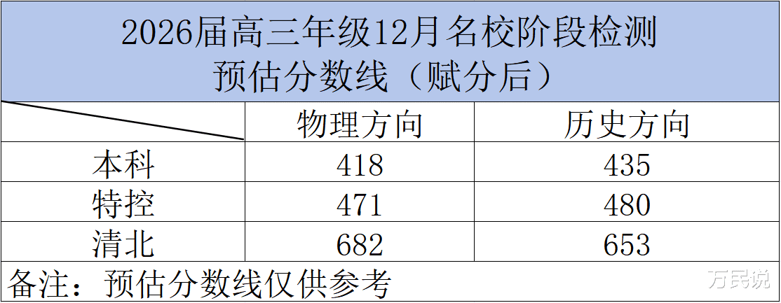 由于参与学校层次较高且样本量有限,但基于多校历年高考数据,我们为您提供了预估参考分数线:清北线历史方向653分,物理方向682分,特控线历史方向480分,物理方向471分;本科线历史方向435分,物理方向418分。这些数据虽非官方,却有助于考生和家长初步定位,明确后续复习的重心。