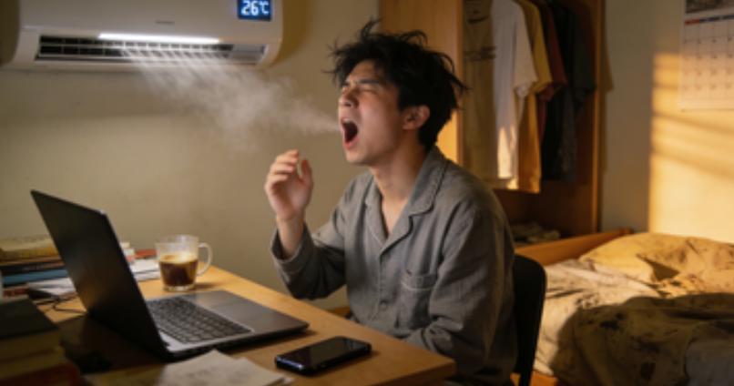 首先,不要熬夜后立马吹风。不管是熬夜工作、刷手机,还是熬夜赶路,结束后都别着急开窗吹冷风,也别马上对着空调、风扇直吹,先待在温暖、通风的地方缓一缓,让身体慢慢适应外界温度,避免一冷一热的刺激。其次,不要熬夜时穿得太单薄。熬夜的时候,身体的代谢变慢,产热也会减少,尤其是肩膀、脖子、后背这些部位,一旦受凉吹风,很容易引发风热相关的不适,建议熬夜时多穿一件薄外套,做好保暖。最后,不要熬夜后靠喝冰水、吃凉食缓解疲劳。熬夜后本身就容易口干舌燥,很多人会下意识喝冰水、吃雪糕,殊不知这样会刺激喉咙和肠胃,加重身体的不适感,反而更容易诱发风热。