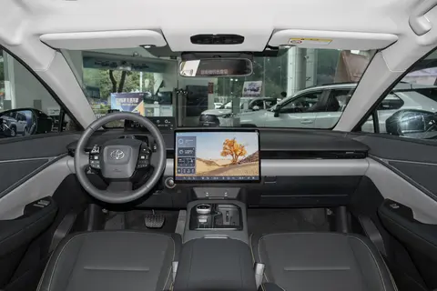 坐进车内,bZ5的内饰变化令人惊喜。以往丰田车型给人的印象是简洁实用,但这次bZ5显然走得更远。15.6英寸的悬浮式中控屏几乎占据了整个中控台的中心位置,超窄边框的设计让它看起来像一台高端平板。屏幕显示清晰,操作流畅,内置的车机系统支持手势控制、语音识别等功能,响应速度令人满意。用料方面,bZ5也下足了功夫。中控台和门板内侧大量采用软质材料包裹,触感细腻;座椅上的黄色缝线和同色安全带则为内饰增添了一抹活力。不过,也有一些小遗憾,比如液晶仪表盘并非一整块屏幕,而是由两块5英寸的小屏幕拼接而成,黑边较宽,影响了整体观感。氛围营造上,bZ5配备了256色可调氛围灯和智能香氛系统(提供雪山、橘光、绯红三种香型),再加上JBL音响系统(顶配车型)和1.44平方米的全景天幕,无论是通勤还是郊游,都能让人感到放松愉悦。