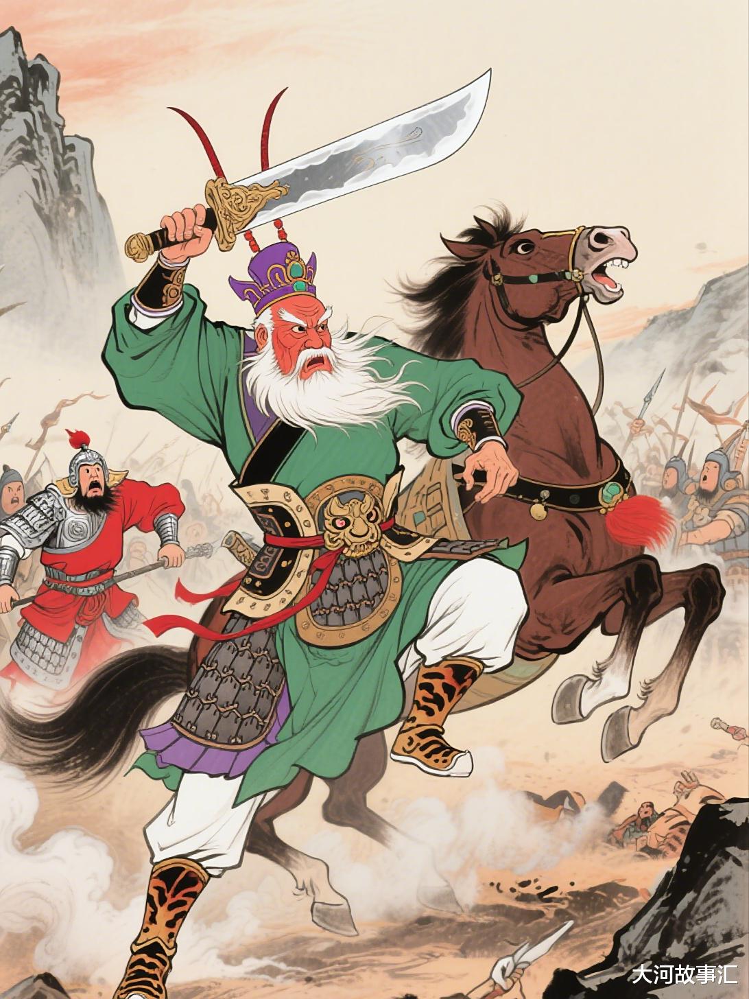 忽然战鼓三通,老将跃马而出,银须飘洒,直冲敌阵。曹军大惊,未及反应,只见那老将已冲破前军,直取中军大帅。夏侯渊急拔刀相迎,刀光闪烁间,老将突然侧身避过,反手一刀,电光火石——