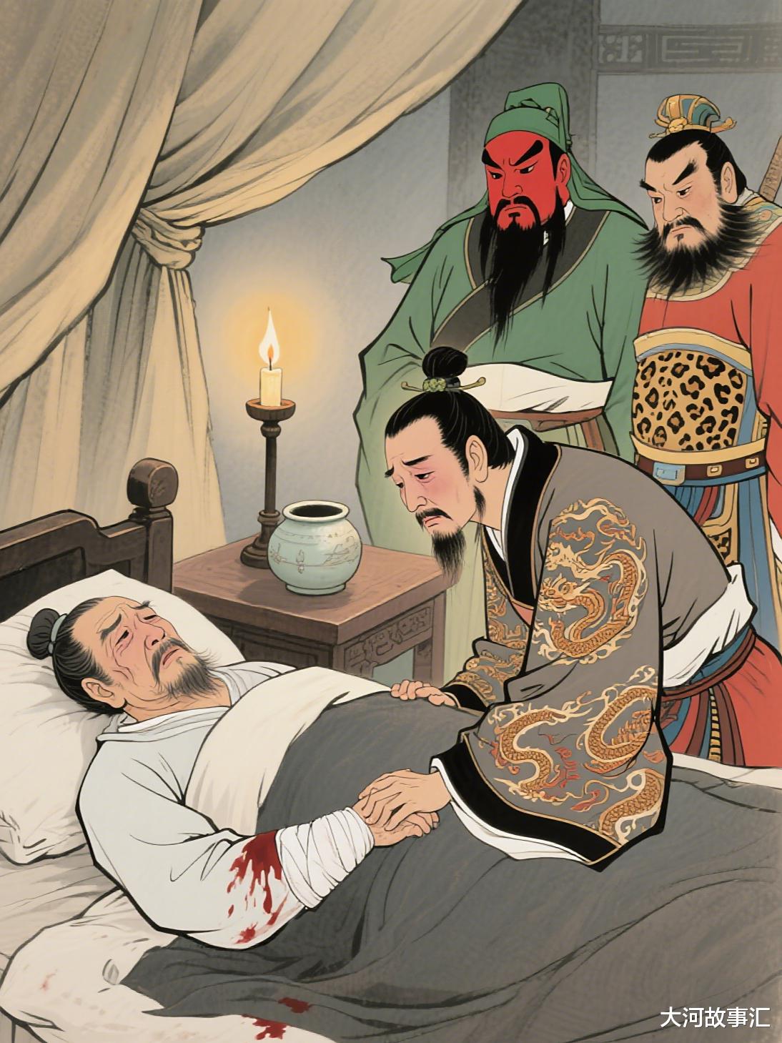 是夜,刘备至帐中探视。黄忠已气息奄奄,仍挣扎言道:“臣乃一武夫,幸遇陛下,位至列将,寿已七旬,死亦无憾。望陛下善保龙体,以图中原…”言毕而逝。