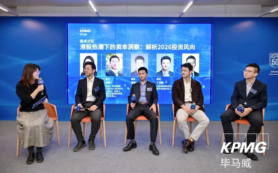 第二场圆桌对话环节主题是“港股热潮下的资本洞察:解析2026投资风向”,由毕马威中国税务总监黄珂主持,捷利上海总经理、TradeGo Markerts (TGM)合伙人、沙利文捷利云科技华东负责人余政,朝希资本新能源事业部董事总经理薛璟,中伦律师事务所资本市场合伙人丁文昊,毕马威中国能源及天然资源行业审计合伙人高林参与讨论。现场,与会嘉宾就当下港股新特征与驱动逻辑、新能源企业资本市场规划策略、监管最新趋势等话题展开热烈讨论,以期为相关企业插上资本之翼、借势腾飞。