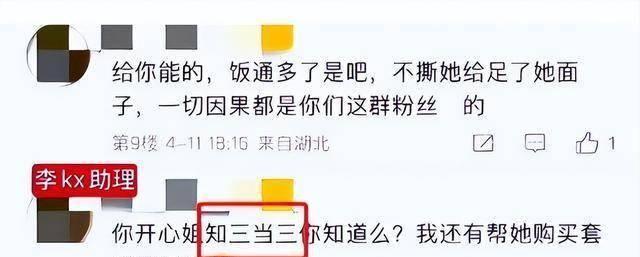 吃瓜群众还没消化完这个瓜,助理又甩出一记重磅炸弹 —— 爆料李凯馨 “知三当三”,直接把道德塌方也安排上了。