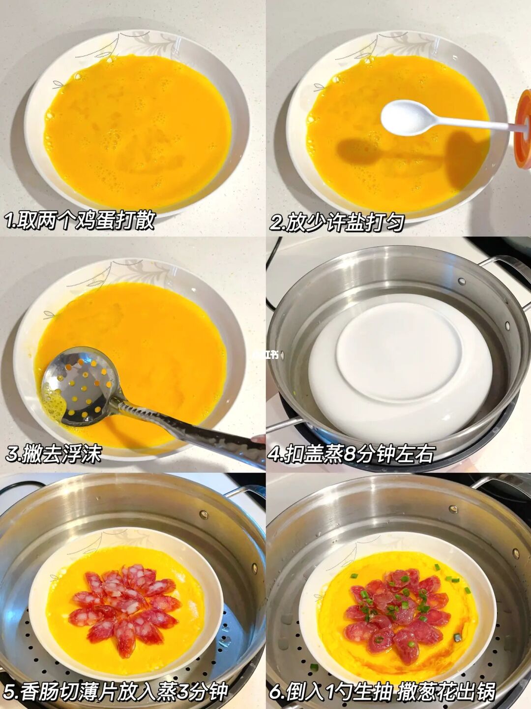 有和我一样喜欢把蒸蛋和米饭拌一起吃的么?滑嫩的蒸蛋,香气浓郁的腊肠,混上米饭简直绝绝子! 🍳腊肠蒸蛋 食材准备:鸡蛋 腊肠 小葱 [一R]两个鸡蛋打散,放少量盐,撇去浮末 [二R]扣上盖子蒸8分钟左右,放入事先切好的腊肠薄片,再蒸3分钟,倒入半勺生抽撒上葱花即可 🥦西兰花炒虾仁 食材准备:西兰花 虾仁 蒜末 [一R]西兰花掰成小朵泡盐水,焯水后捞出 [二R]虾仁煎熟,爆香蒜末,依次放入西兰花,虾仁 [三R]加一勺生抽调味,半勺蚝油,小半勺鸡精调味,炒均匀即可出锅