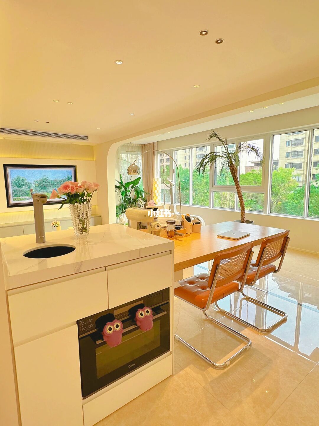 客厅和卧室也打通了,客厅开间变成7.8m,有一个大大的岛台,平时做做烘焙看看书好~