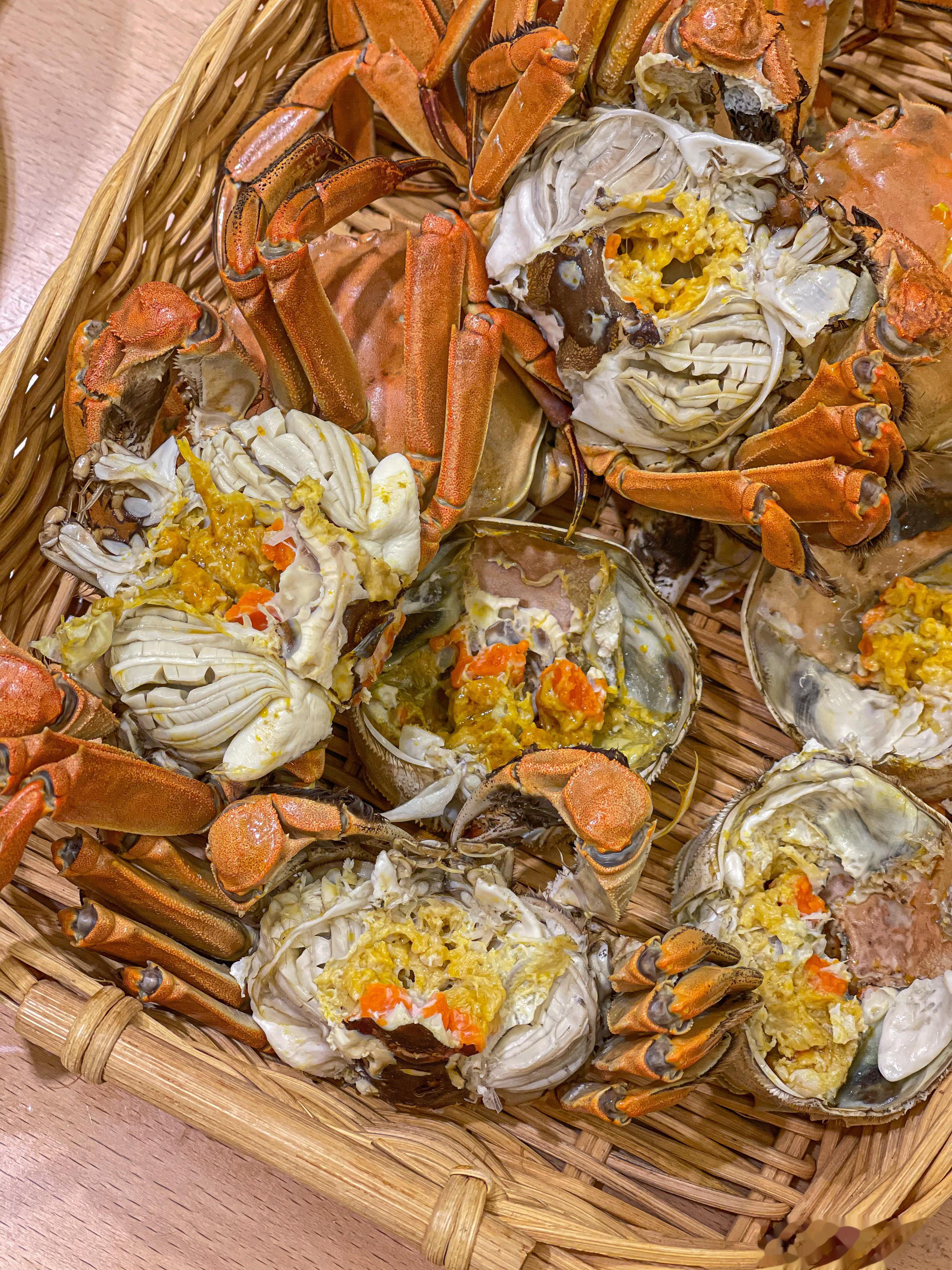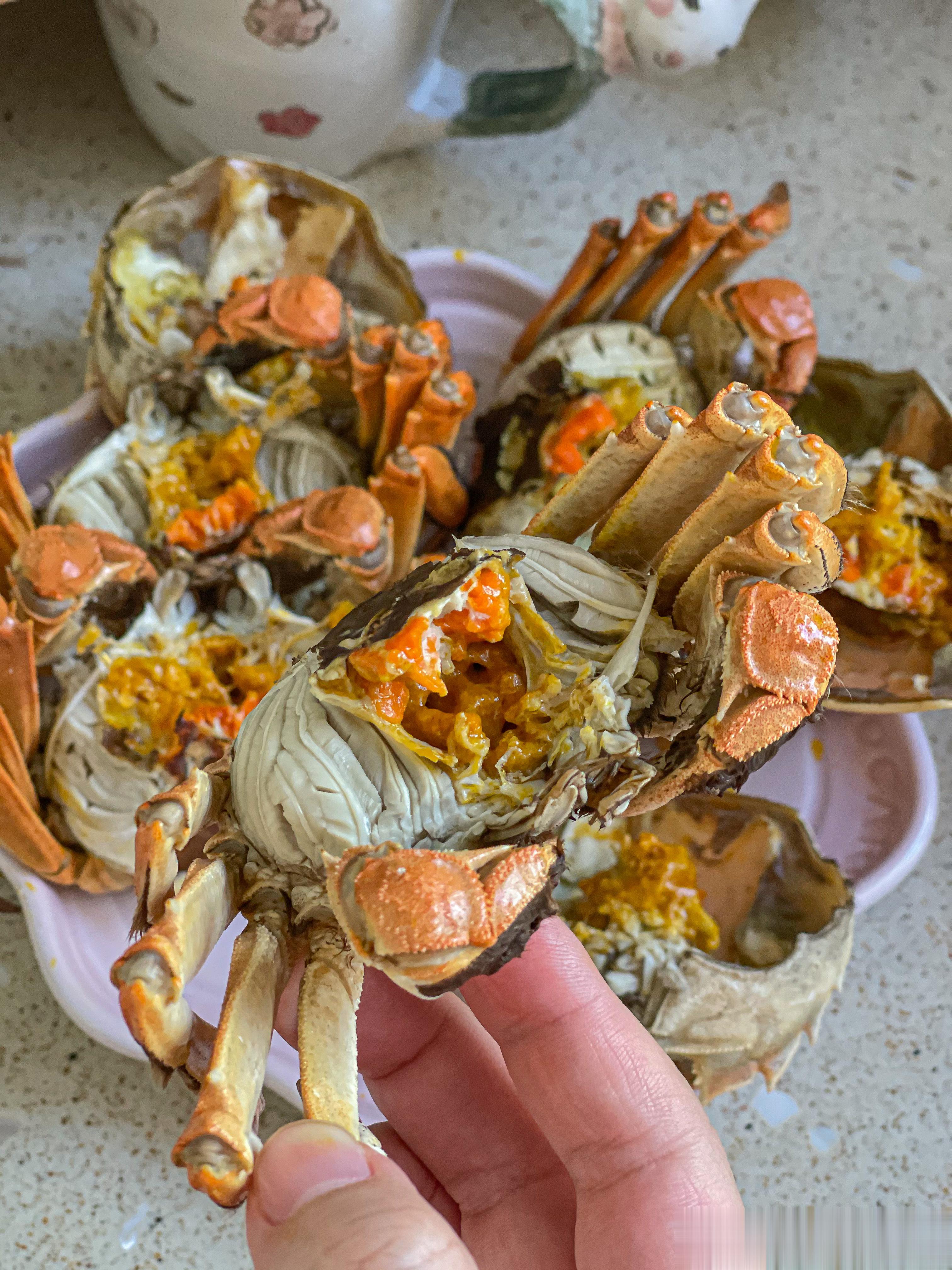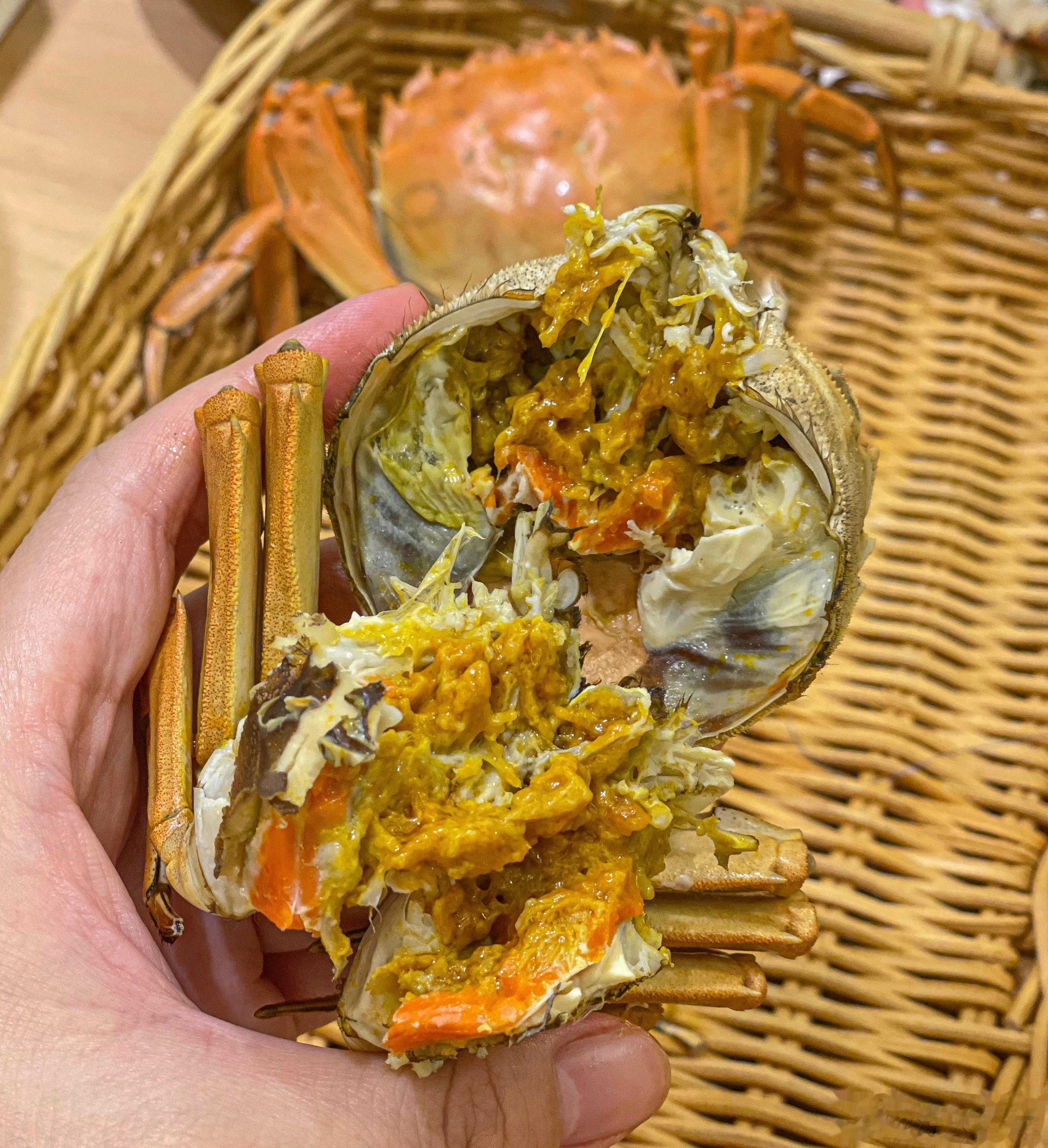正宗盘锦河蟹在稻田里散养,野味儿十足,口感鲜咸。母蟹满满的蟹黄,蟹肉细软鲜甜,味道极其鲜美。