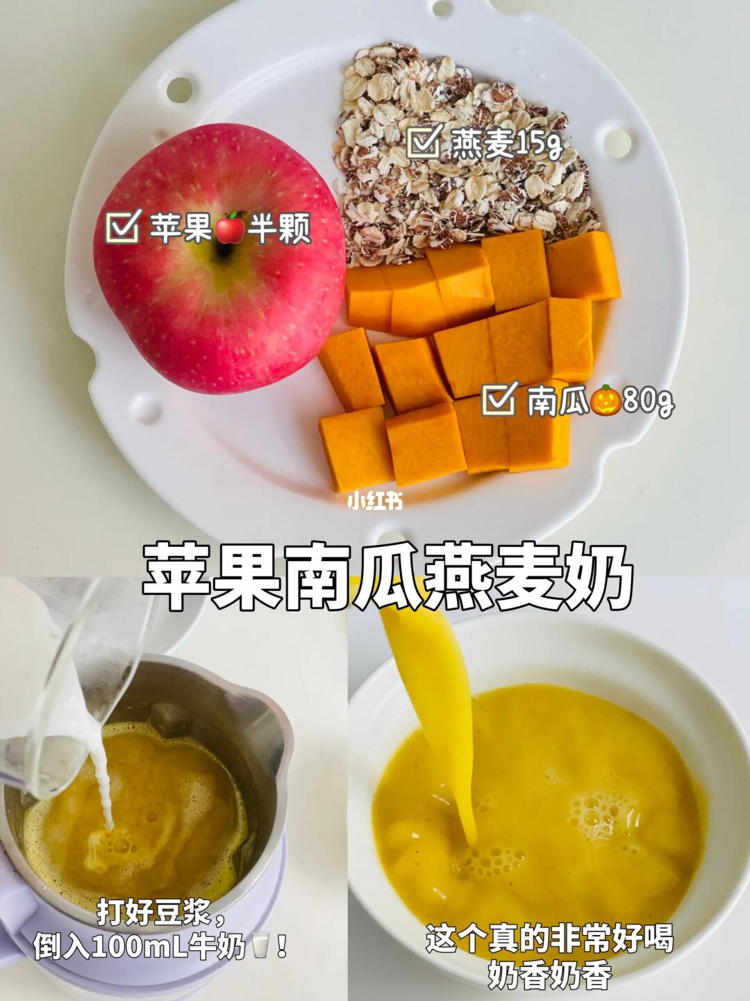 3️⃣苹果🍎➕燕麦➕南瓜🎃➕100mL牛奶🥛