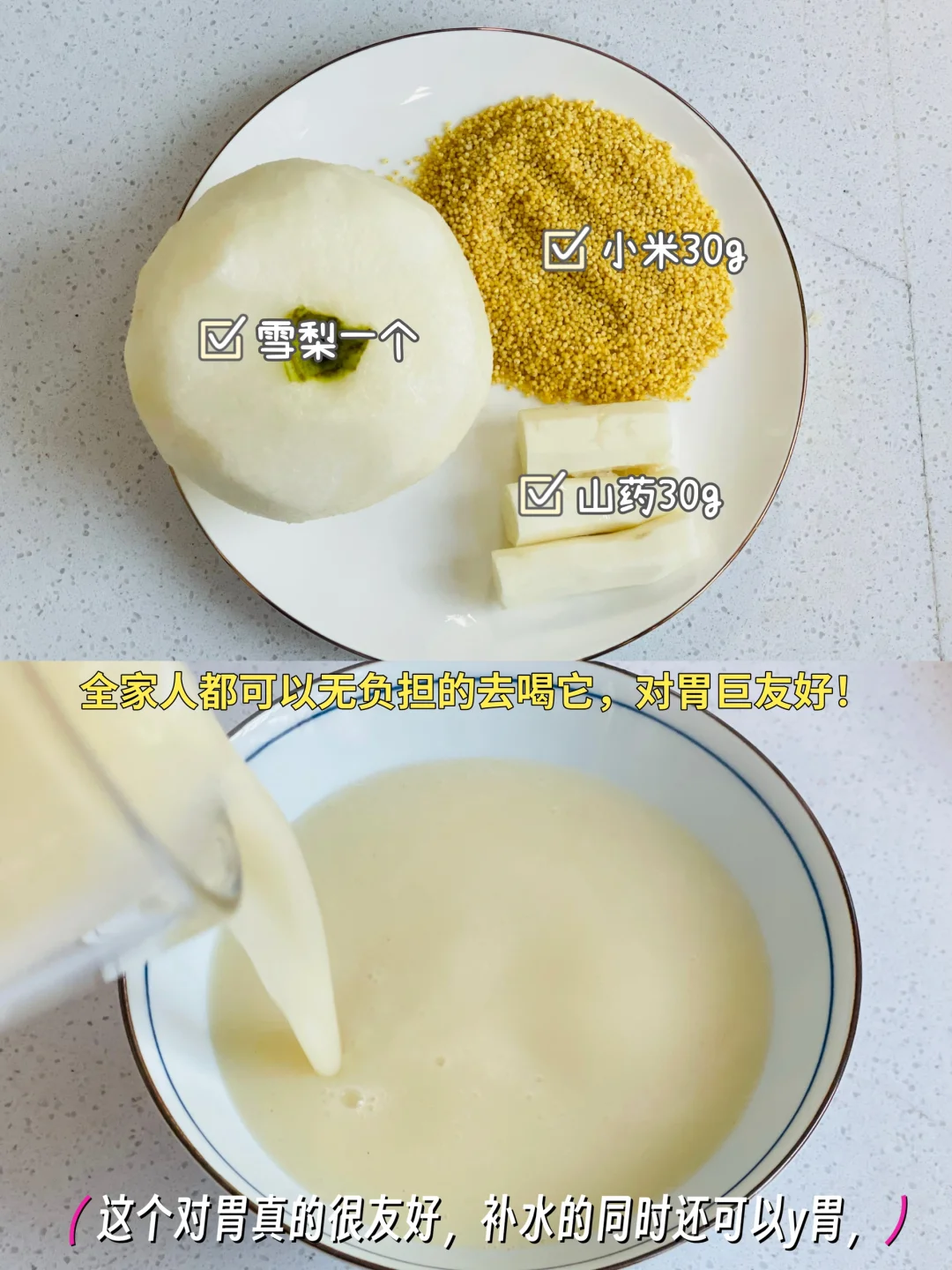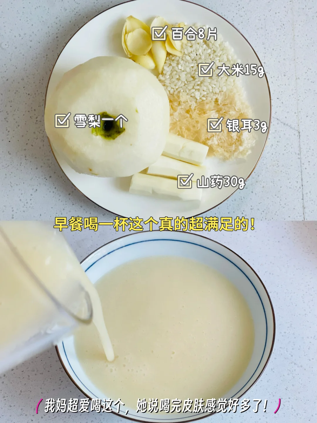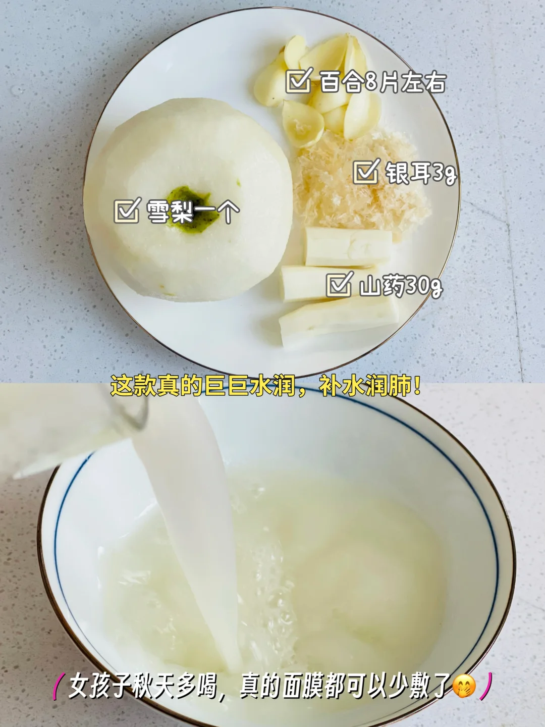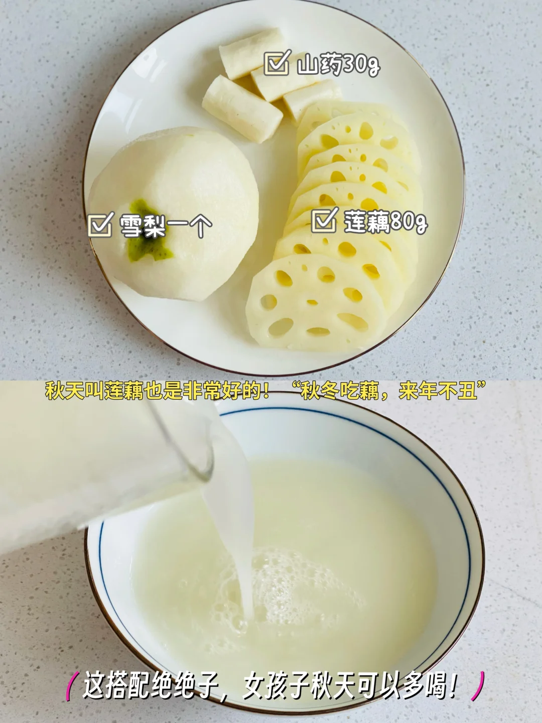 3️⃣雪梨🍐一个➕莲藕80g➕山药30g