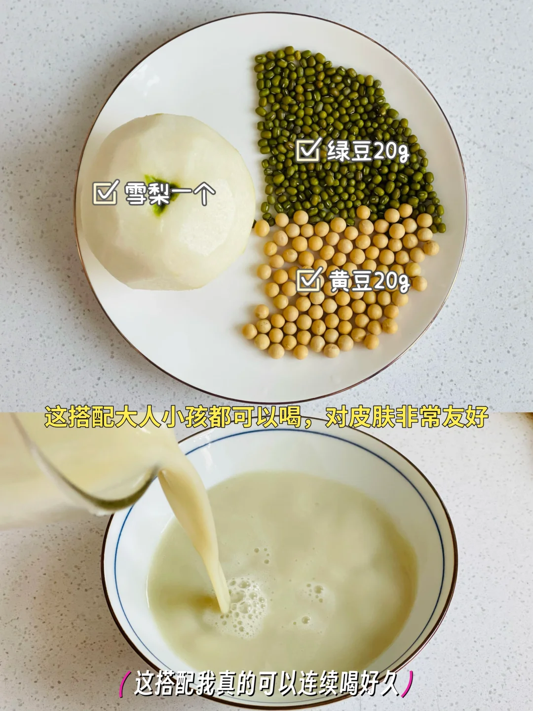 2️⃣雪梨🍐一个➕绿豆20g➕黄豆20g