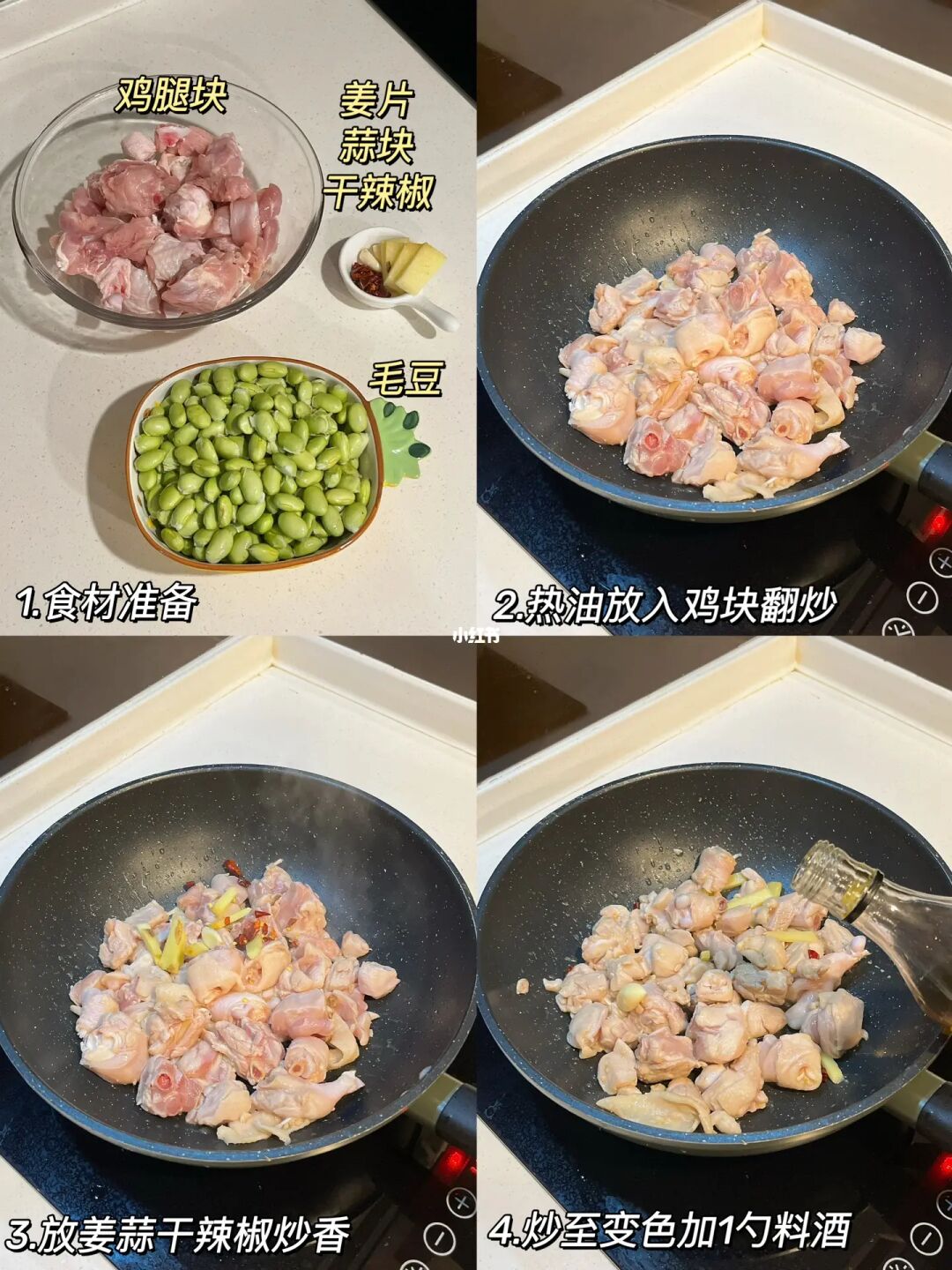 食材准备:鸡腿块 毛豆 蒜 姜片 辣椒
