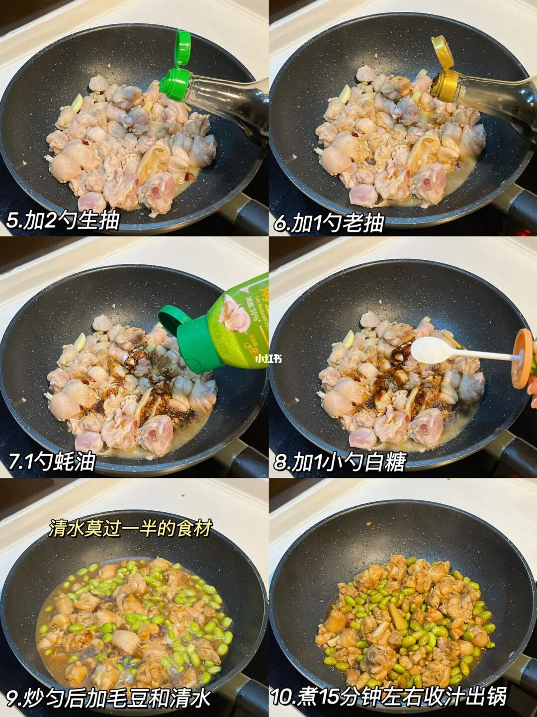 [三R]再放入毛豆和莫过一半食材的清水,煮15分钟左右收汁出锅
