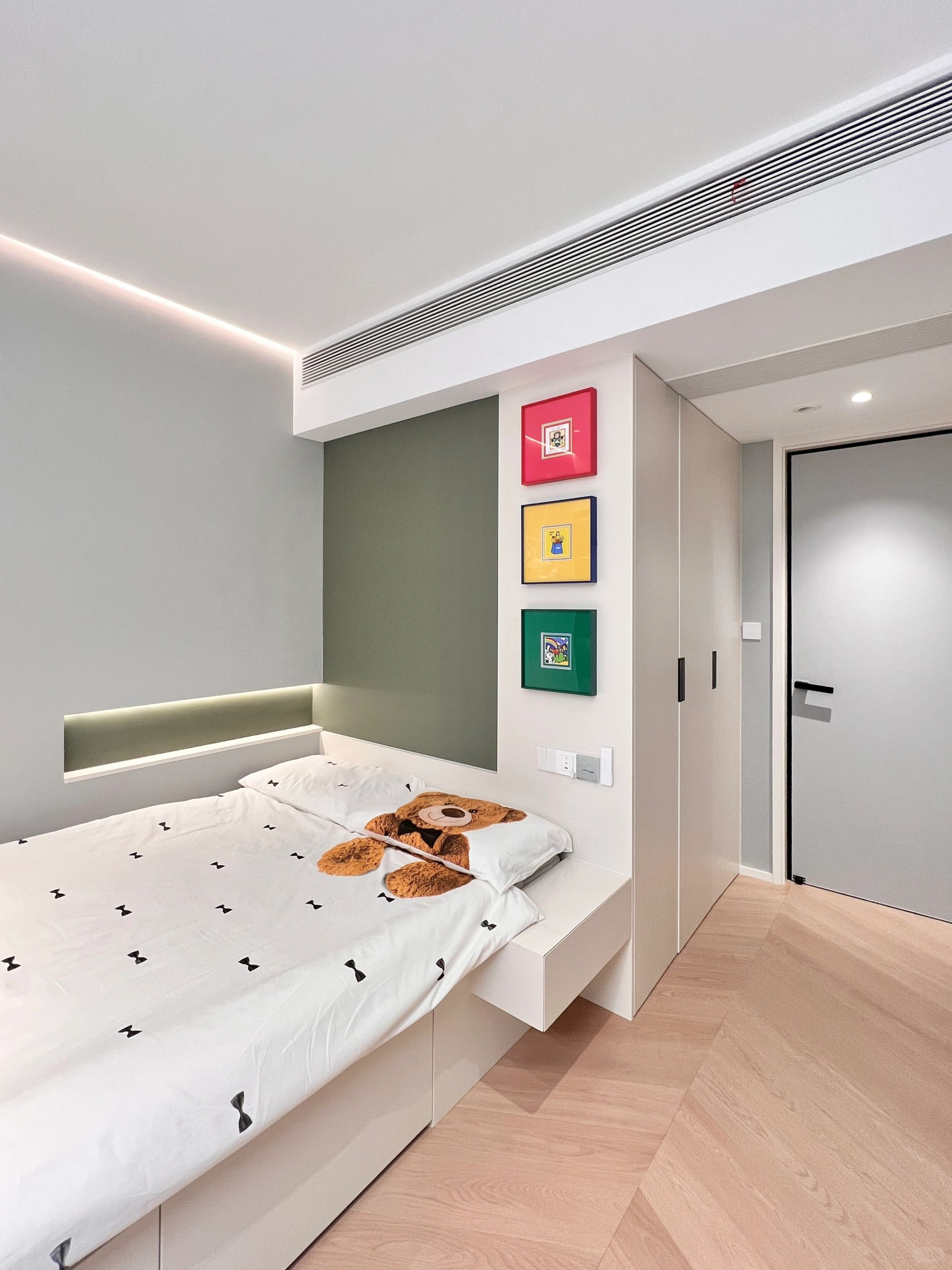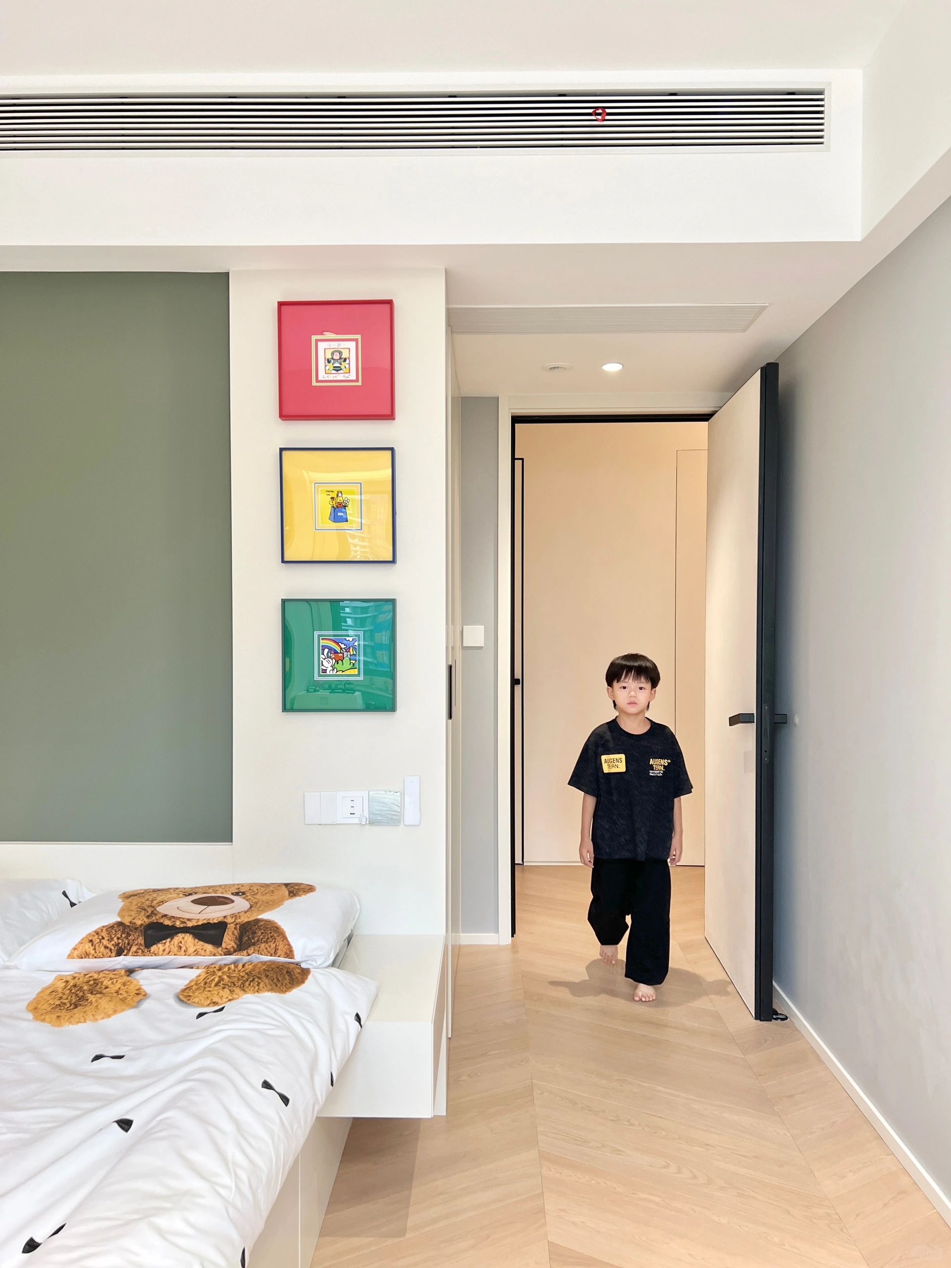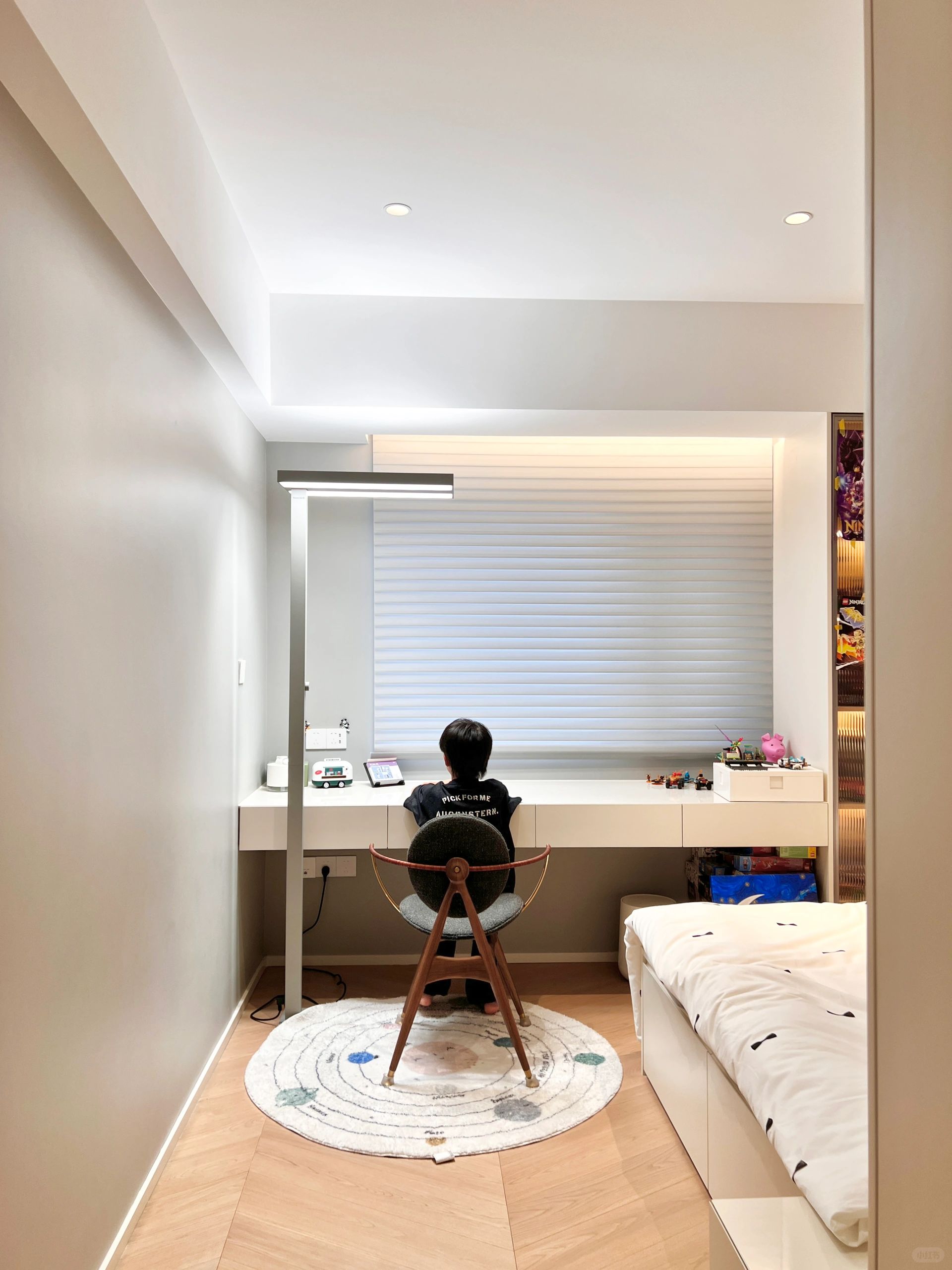 Hello 我是阿花 今天来分享一下熊孩子的儿童房 儿童房面积:10²左右 由于空间面积不是很大,为了增加收纳的空间,选择做了榻榻米 真的能放很多东西 这个榻榻米非做不可哈哈哈 进门处做了衣柜 窗户边做了悬浮书桌柜子一体 ▪️ 儿童房色系:灰绿白 之前有好多姐妹问色号 阿尔贝娜尊典墙面漆(灰色:84RD02-65|绿色96YL08-33) 两款颜色搭配着真的很高级! 因为是儿童房 所以选乳胶漆品牌也会谨慎一点 这个品牌有100多年的历史了,选大品牌用着更放心一些🥰 在环保性 耐用性和色泽稳定性方面也都做得很不错,最重要的一点这款乳胶漆耐污性还很棒,熊孩子乱涂乱画只需要拿布擦掉就好,这对于家里有孩子的真的太友好啦! 🖤 温馨小提示:乳胶漆配色大家最好选择电脑调色哦,颜色会更接近色卡一些,还有用完剩下的乳胶漆一定要存放好哦,方便后期万一有需要补色 🥳今天分享就到这里咯,还有什么想要知道的评论区见哦