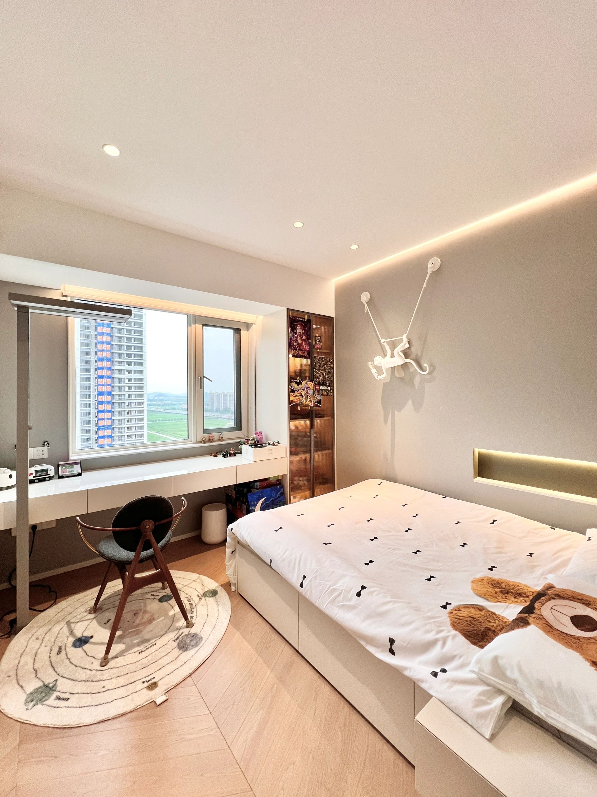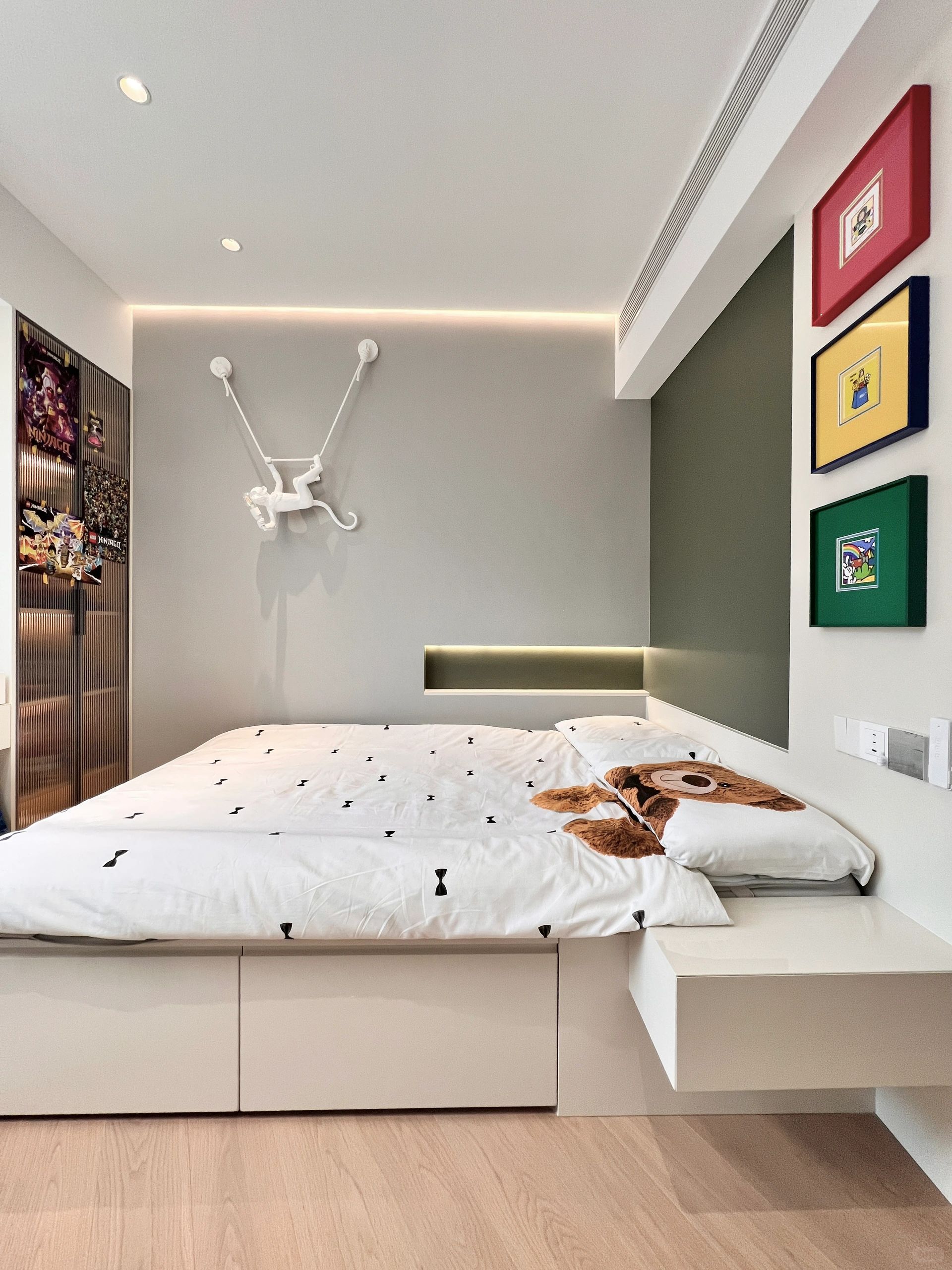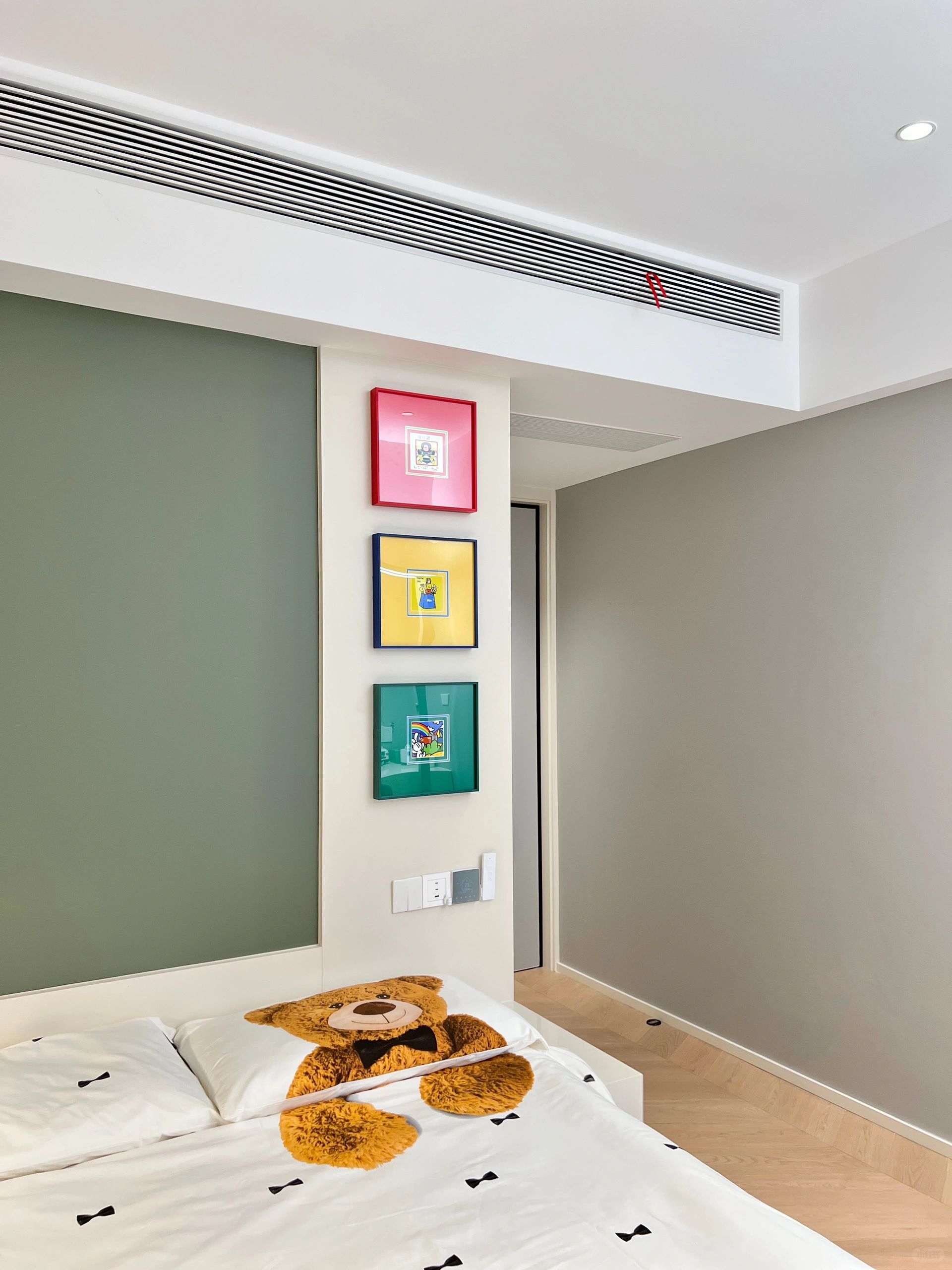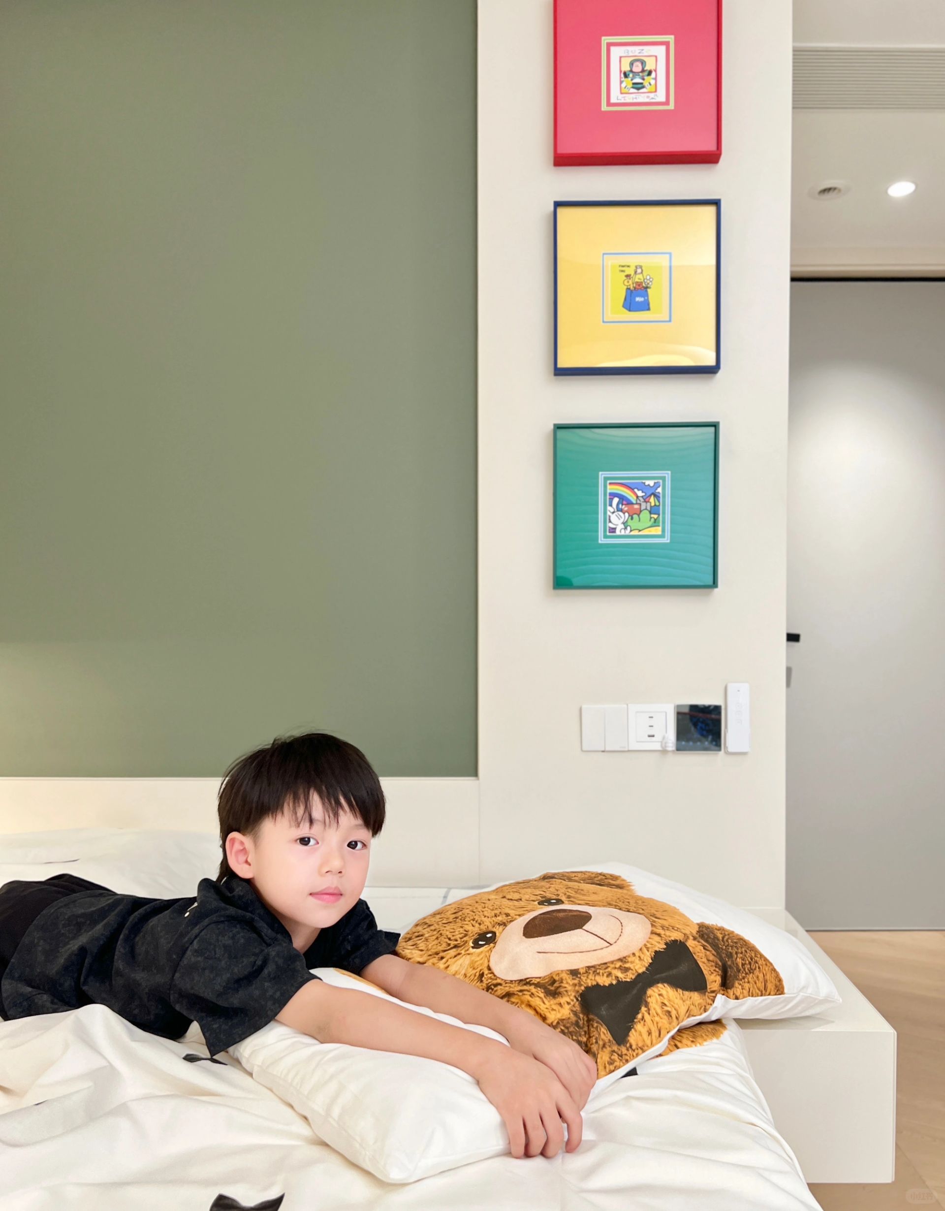 Hello 我是阿花 今天来分享一下熊孩子的儿童房 儿童房面积:10²左右 由于空间面积不是很大,为了增加收纳的空间,选择做了榻榻米 真的能放很多东西 这个榻榻米非做不可哈哈哈 进门处做了衣柜 窗户边做了悬浮书桌柜子一体 ▪️ 儿童房色系:灰绿白 之前有好多姐妹问色号 阿尔贝娜尊典墙面漆(灰色:84RD02-65|绿色96YL08-33) 两款颜色搭配着真的很高级! 因为是儿童房 所以选乳胶漆品牌也会谨慎一点 这个品牌有100多年的历史了,选大品牌用着更放心一些🥰 在环保性 耐用性和色泽稳定性方面也都做得很不错,最重要的一点这款乳胶漆耐污性还很棒,熊孩子乱涂乱画只需要拿布擦掉就好,这对于家里有孩子的真的太友好啦! 🖤 温馨小提示:乳胶漆配色大家最好选择电脑调色哦,颜色会更接近色卡一些,还有用完剩下的乳胶漆一定要存放好哦,方便后期万一有需要补色 🥳今天分享就到这里咯,还有什么想要知道的评论区见哦