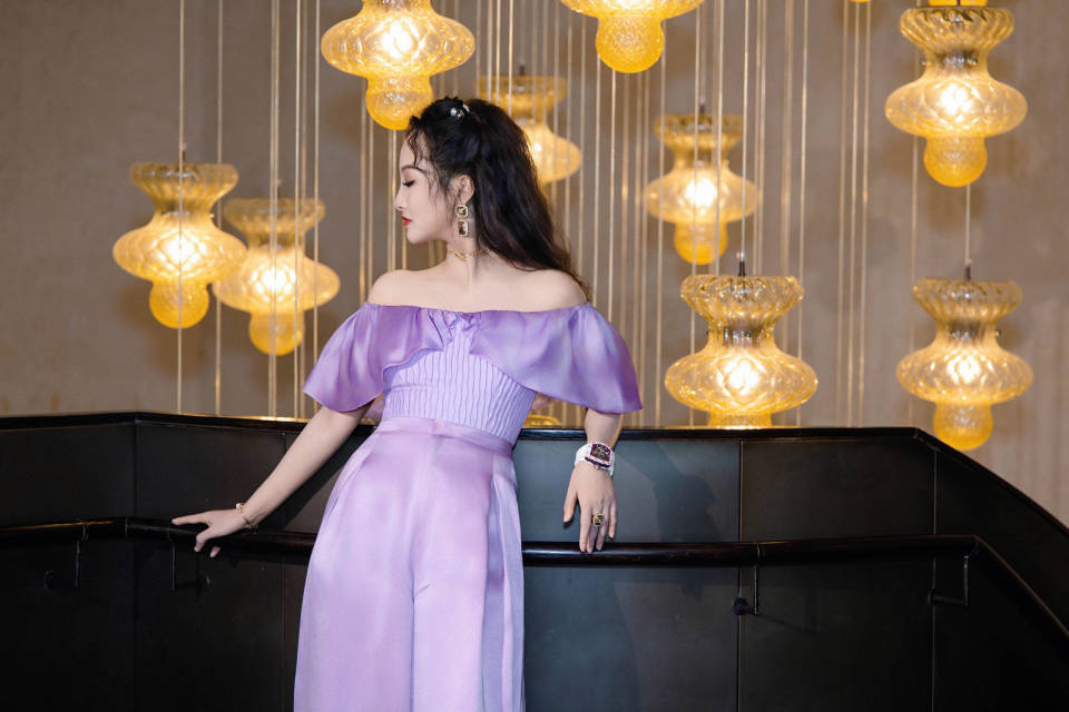 当晚,项亮月以一袭设计简约、剪裁考究的香芋紫温柔亮相,恰到好处地衬托出其典雅气质。礼服优雅的紫色调与Rola Shine珠宝的璀璨光芒相得益彰,在活动现场成为一道亮丽的风景线。作为影视文化产业的杰出代表,同时也是中华文化促进会美育工作委员会的美育导师,项亮月的出席体现了文化艺术与高端时尚的深度对话。