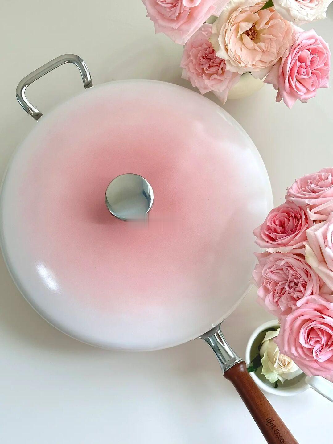 我坚信,收集颜值高的锅具肯定能提升我做饭的频率和厨艺😜 渐变晕染的粉色陶瓷釉像给珍珠不粘锅抹上了腮红 这谁看了不迷糊 而且是0氟陶瓷不沾涂层,煎蛋,煎豆腐,煎鱼啥的一点都不担心 到手才发现锅盖和锅身居然还有304食品不锈钢材质,炒菜的时候可以减少油烟