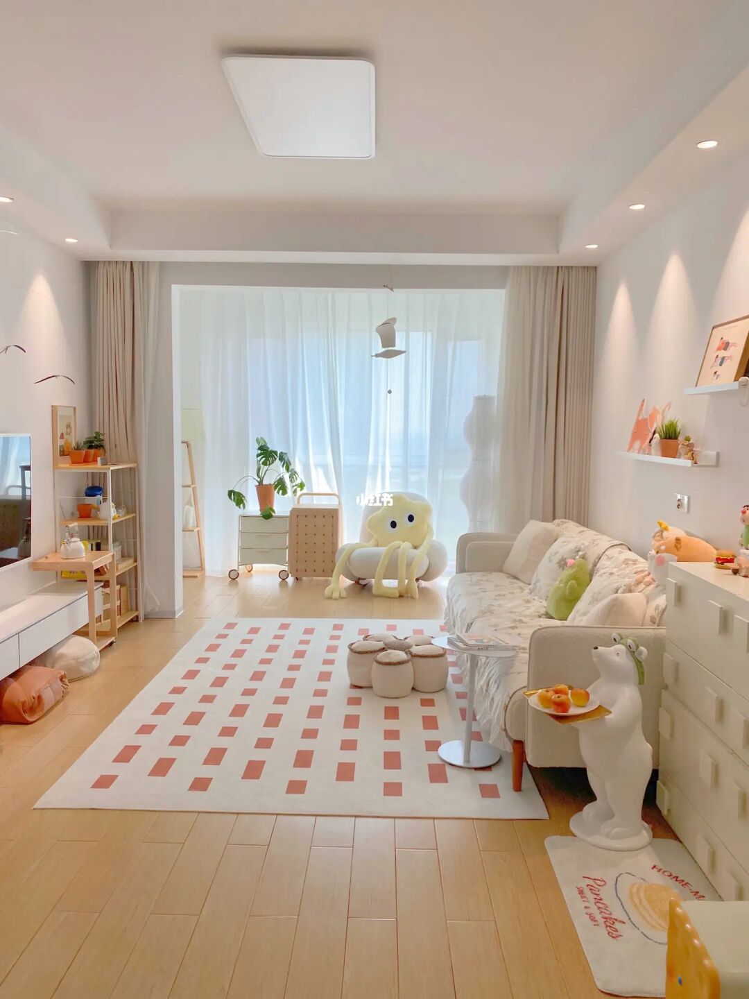 我家套内98平,阳台连通客厅和卧室,面积比较小,所以阳台也充分使用了,属于集洗衣、收纳、休闲于一体了。