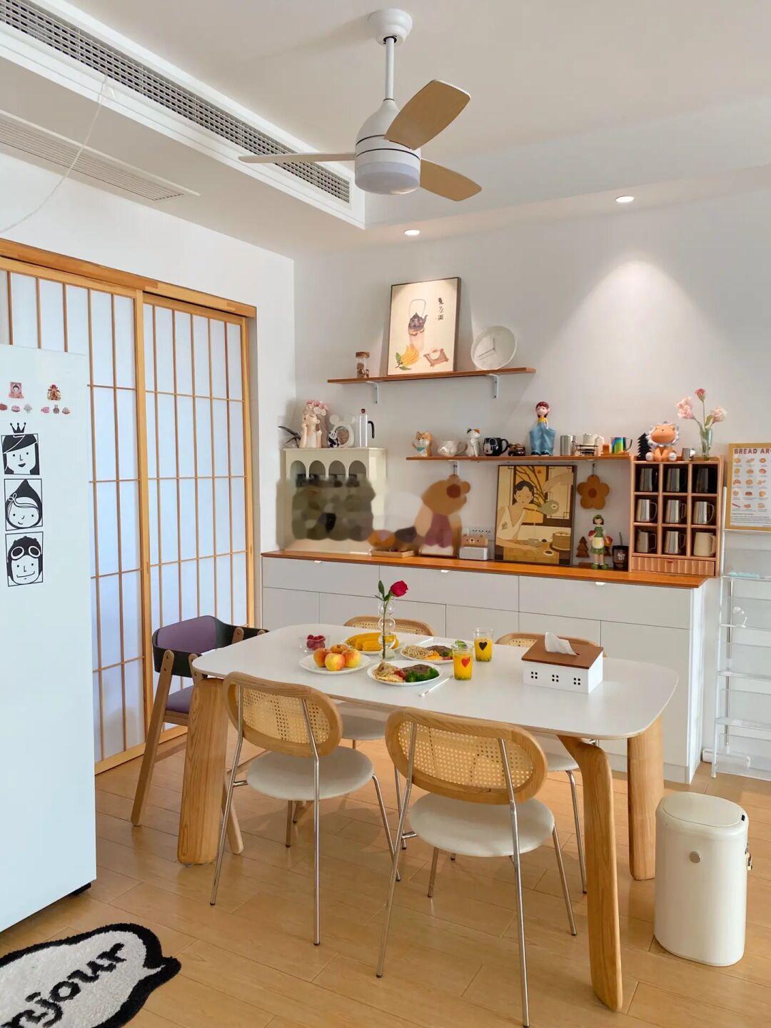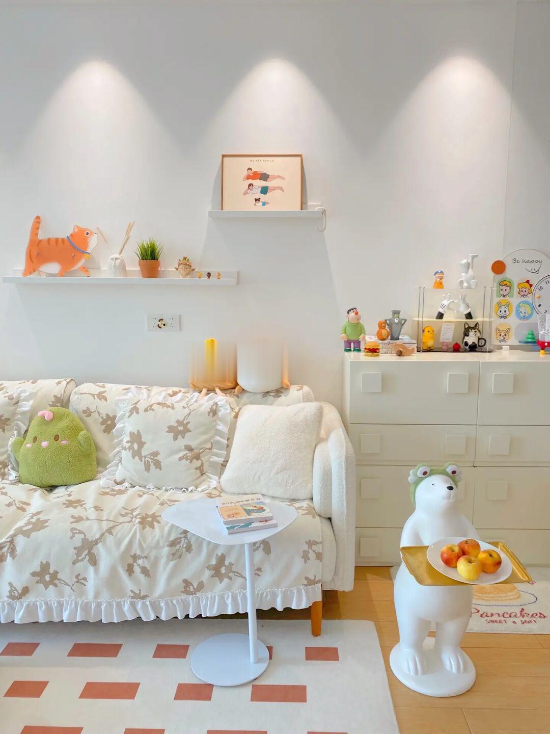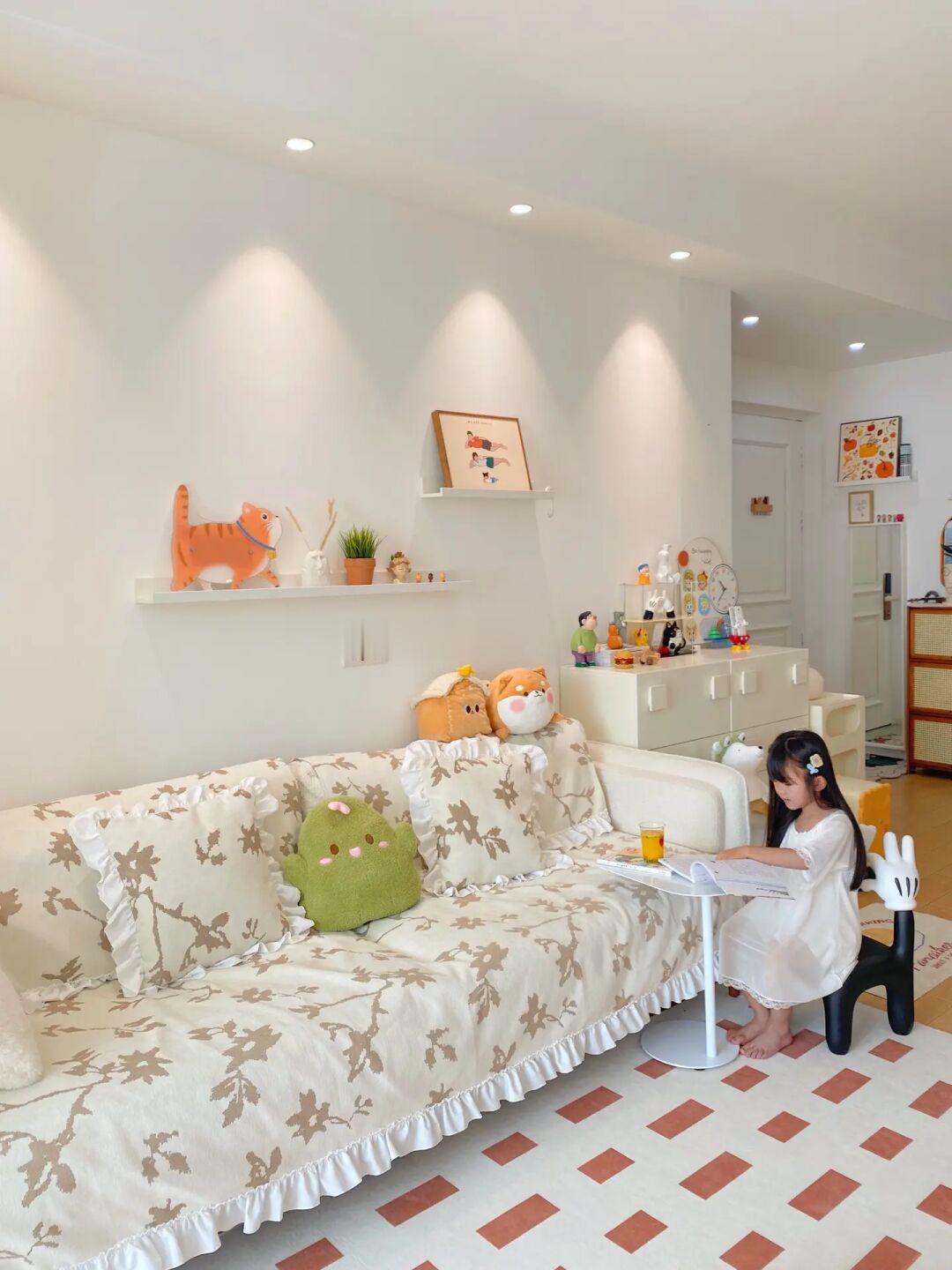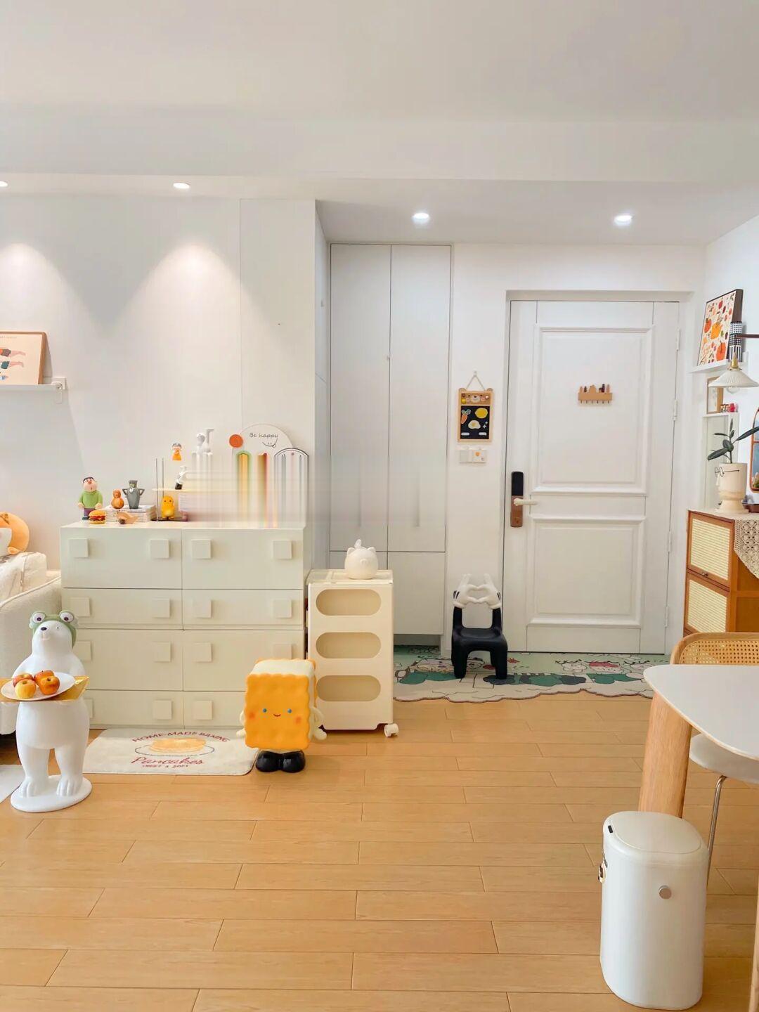 笑发财了,谁懂呀😂 我女儿的同学们也是我的邻居们,可喜欢来我家玩 每次回家都闹着要他爸妈按我家装🏠 我家可爱的摆件挺多的,孩子们喜欢 ▫️家具基本都是白色,沙发盖上沙发巾,舒心多了[偷笑R] ▫️铺上地毯,孩子活动空间大不少 ▫️餐厅比较小,进进出出,会碰着;餐桌是圆边圆角,大象腿这种,一圈可以坐6个人,来客也够用。 ▫️客厅阳台打通,空间扩大不少 ▫️卧室布置都比较温馨,衣柜少,不过有个衣帽间。 ▫️洗手间砸半墙,会有噪音,面积小的劝砸哦!