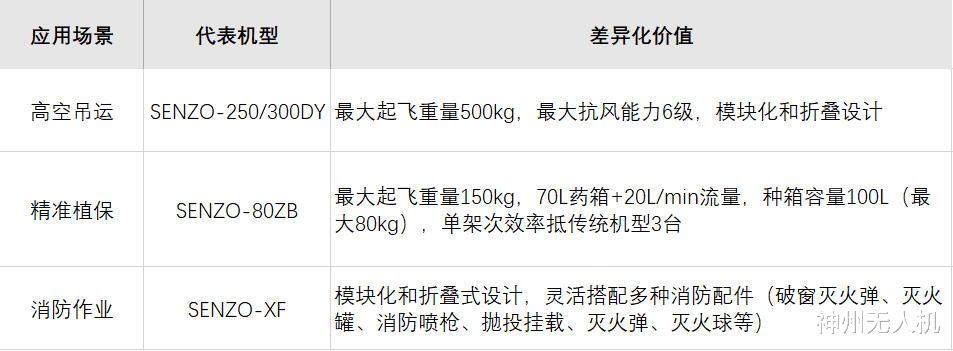 神州无人机以军工级标准打造产品线,在载重、续航、环境适应性等关键指标上远超同业: