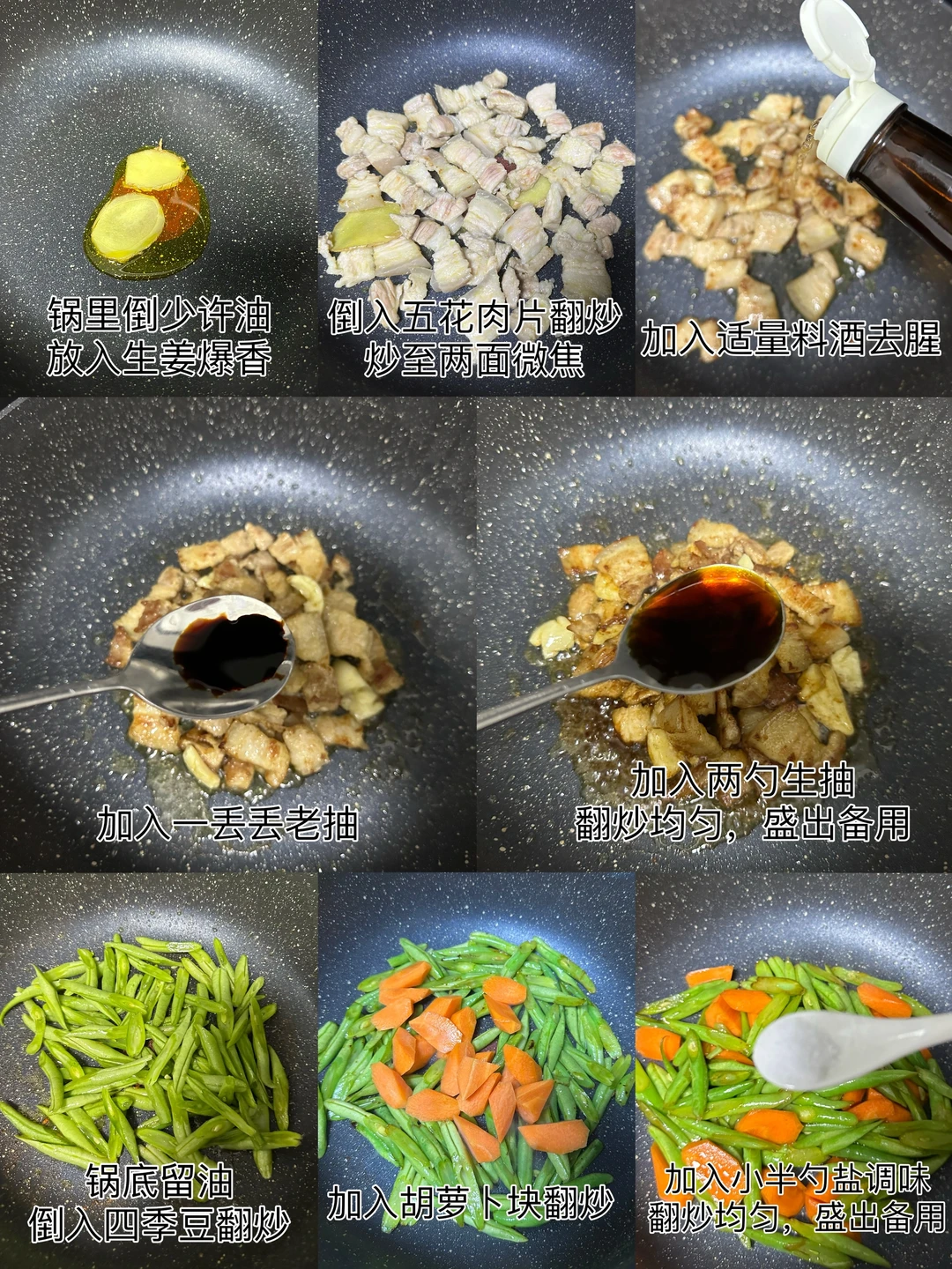 食材:五花肉 四季豆 胡萝卜 生姜 大米