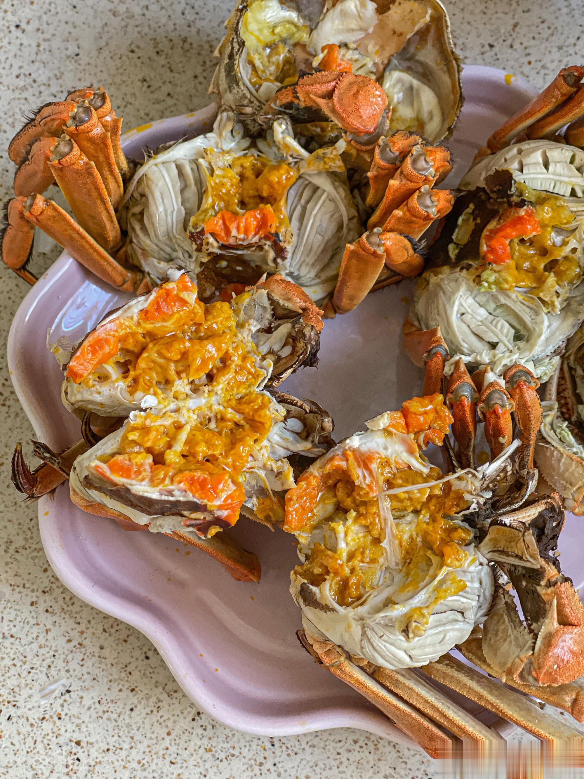 正宗盘锦河蟹在稻田里散养,野味儿十足,口感鲜咸。母蟹满满的蟹黄,蟹肉细软鲜甜,味道极其鲜美。