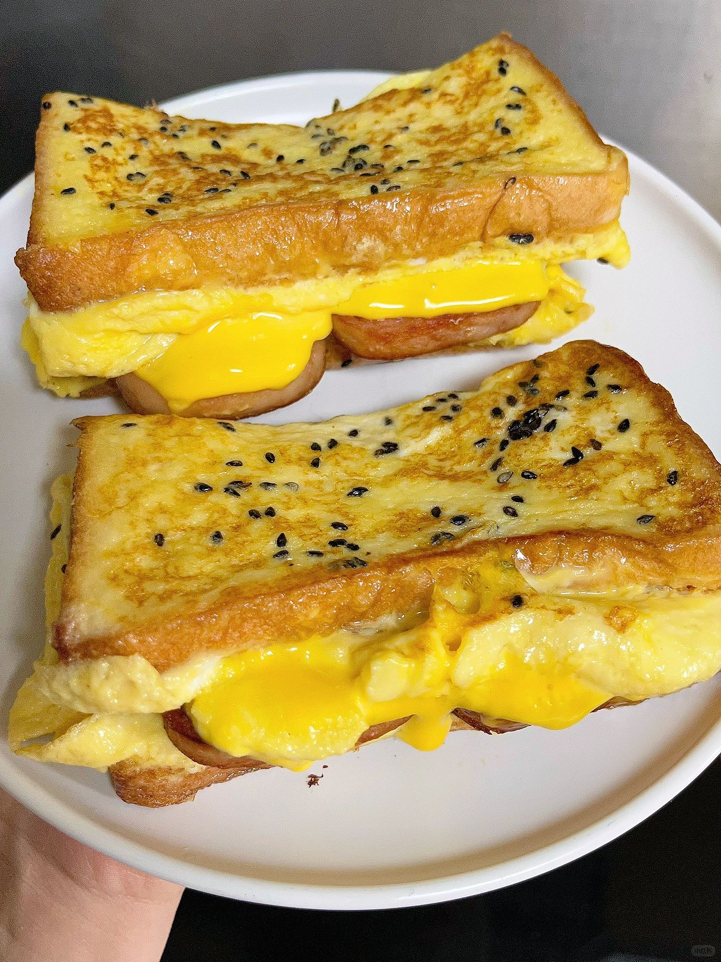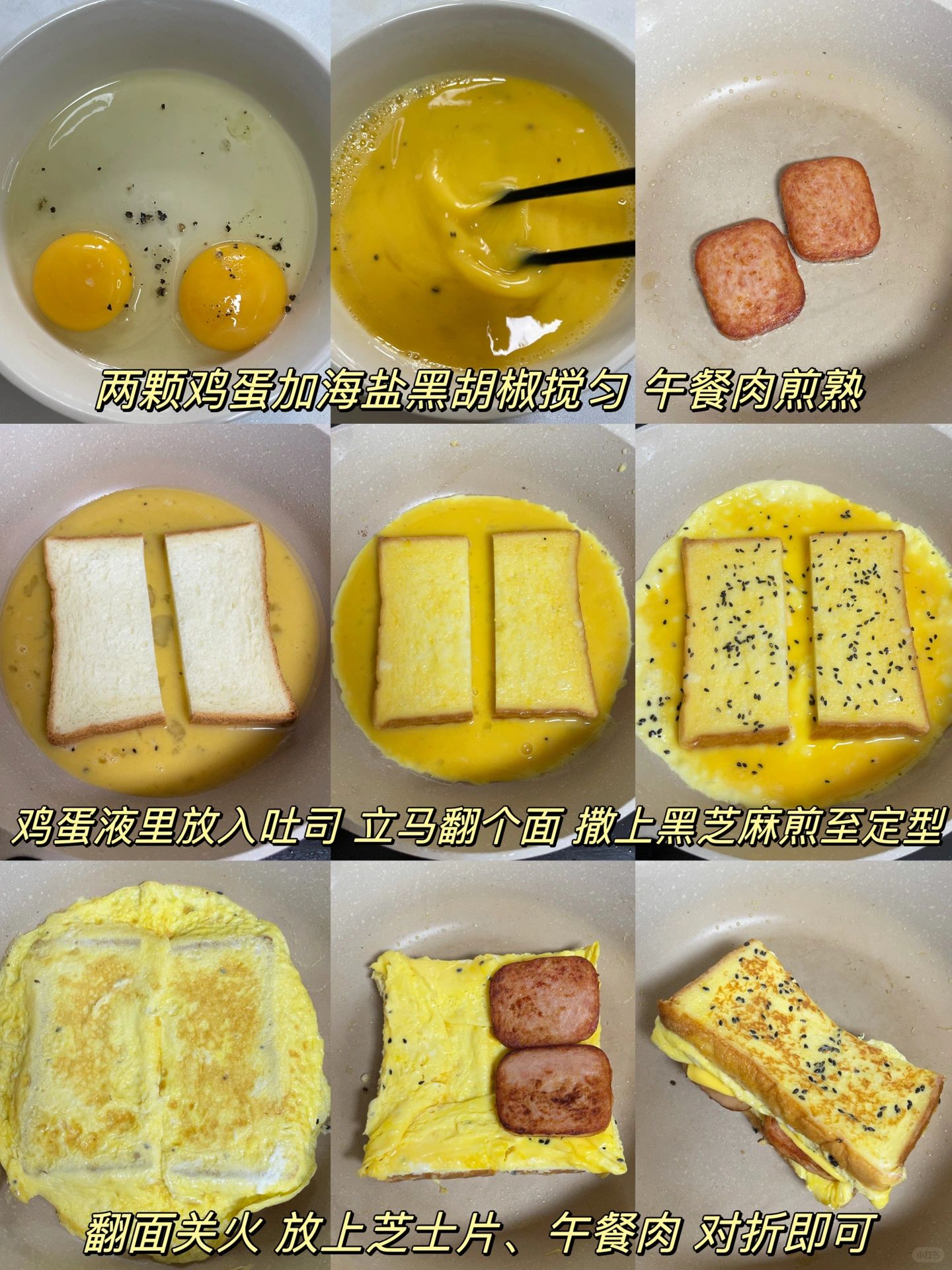 十分钟快手早餐! 午餐肉芝士蛋包三明治!! 一口下去口感超丰富 绝啦~ 有肉有蛋超营养 做法懒人快手 家里有吐司的姐妹赶紧去试试! 步骤如图⬆️