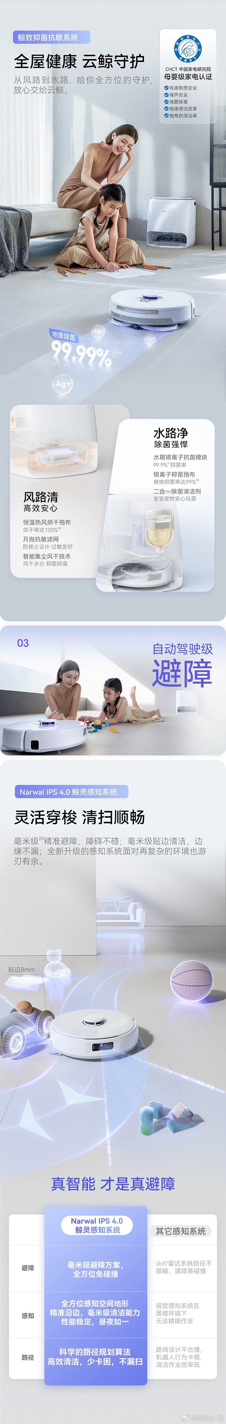 [鼓掌]扫拖机器人7800Pa大吸力+毛发防缠绕+30天免倒垃圾+双结构光避障