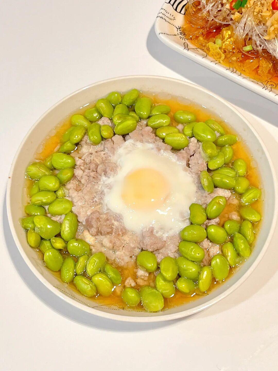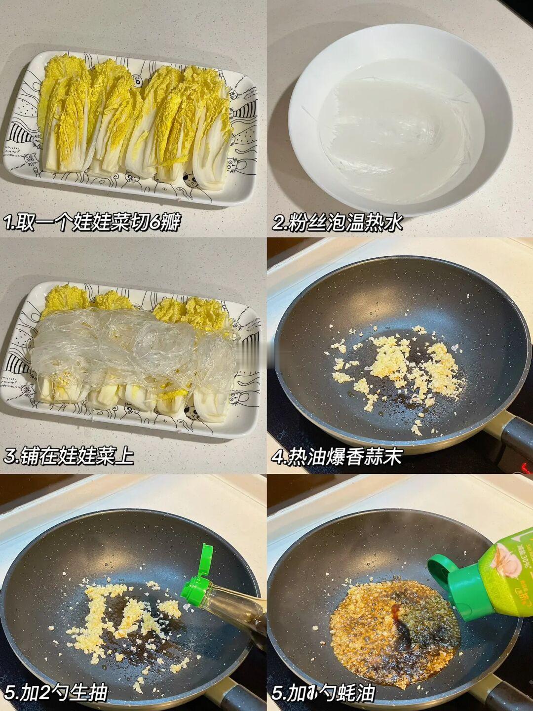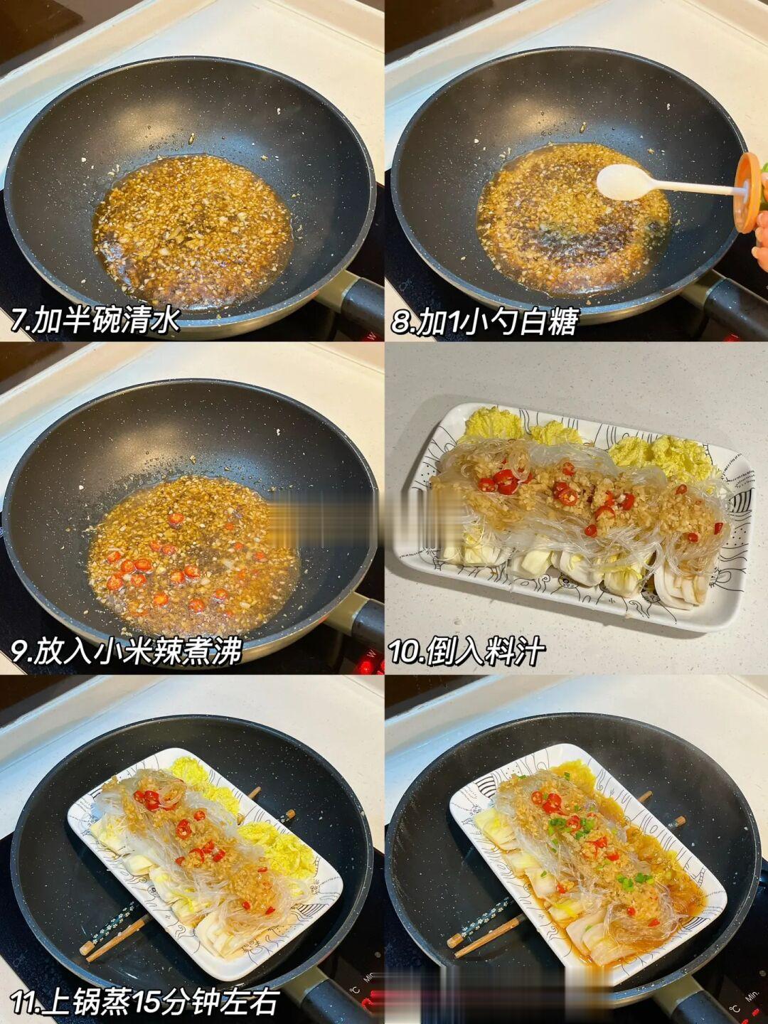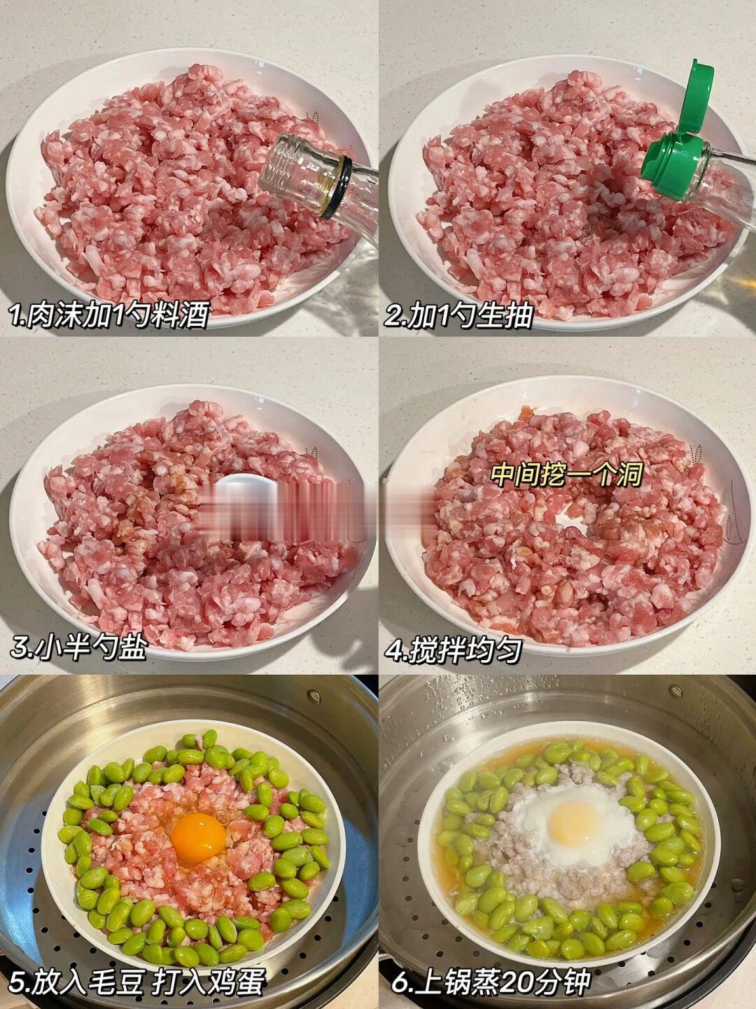 今天和大家分享两道蒸菜[偷笑R]快手又美味[赞R] - 🌶️蒜蓉粉丝娃娃菜 食材准备:娃娃菜 粉丝 蒜 小米辣 葱 [一R]取1个娃娃菜切6瓣,粉丝泡温热水后捞出铺在娃娃菜上 [二R]热油爆香蒜末,加2勺生抽、1勺蚝油、半碗清水和1小勺白糖,再放入小米辣煮沸 [三R]将料汁倒入娃娃菜内,上锅蒸15分钟左右撒葱花出锅 🍲毛豆肉饼蒸蛋 食材准备:肉沫 鸡蛋 毛豆 [一R]肉沫加1勺料酒、1勺生抽、小半勺盐搅拌匀,中间挖一个洞 [二R]中间打入一个鸡蛋,毛豆围边上,上锅蒸20分钟左右出锅