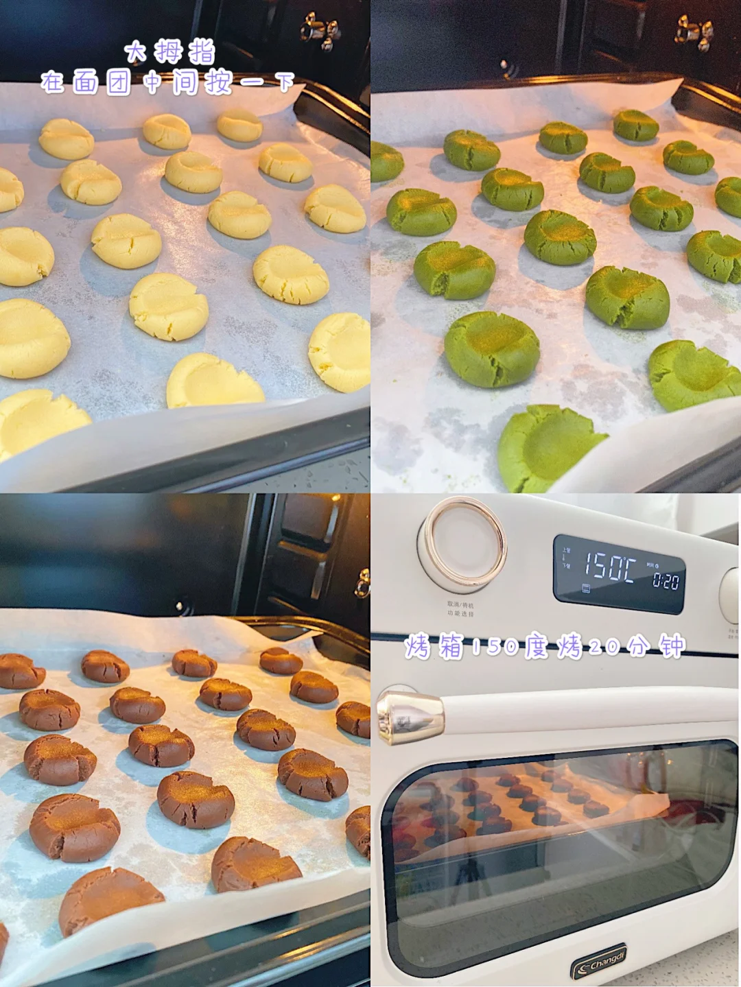 🍃烘烤饼干是放在长帝多功能空气炸锅的第二层,150度,供大家参考哦,每只烤箱的温度脾气不一样,适当调节~