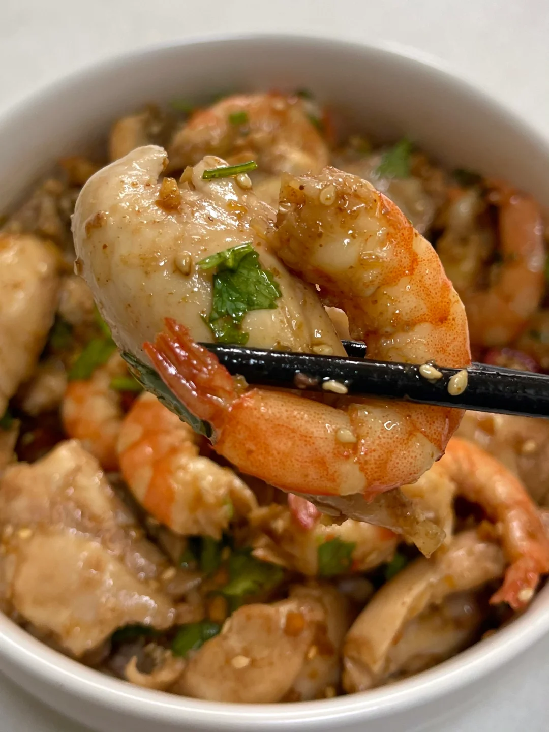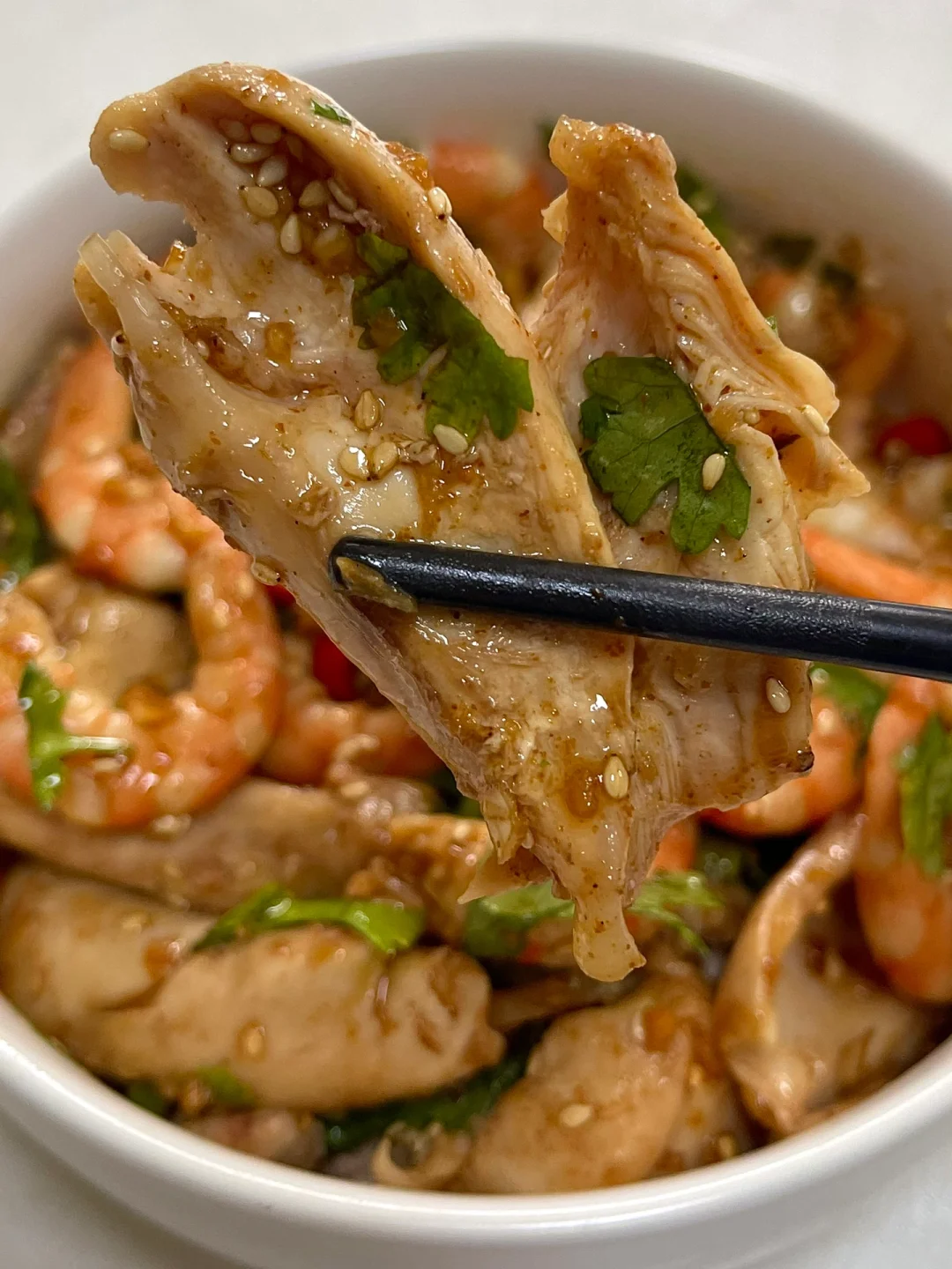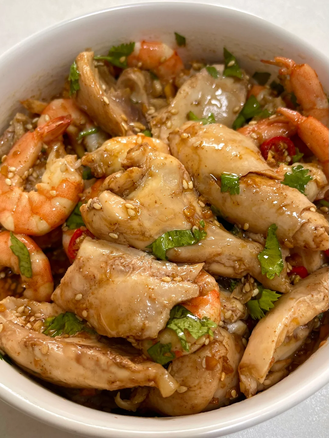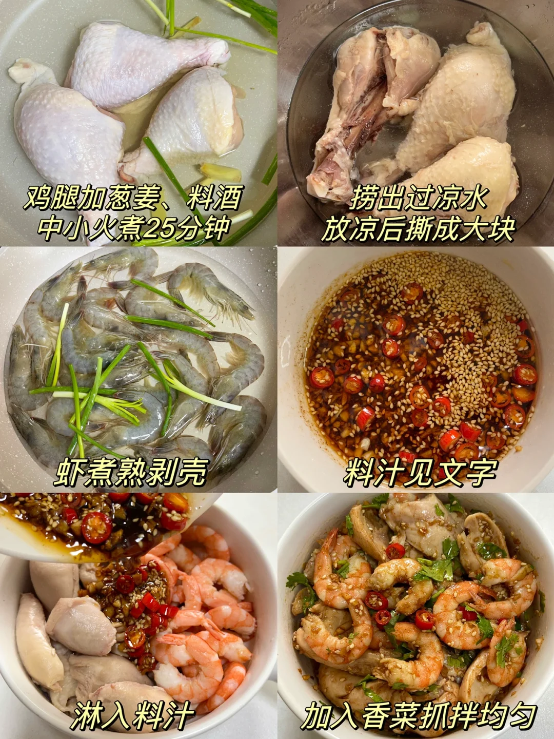 巨巨巨好吃的凉拌虾仁鸡腿!! 肉质紧嫩的鸡肉 Q弹的虾仁 搭配在一起真的蛋白质大爆炸! 再淋上酸辣爽口的料汁 太绝啦~ 料汁:小米辣、蒜末、白芝麻、辣椒面,泼热油加入两勺生抽、一勺醋,搅匀根据口味加入香菜 步骤如图⬆️姐妹们赶紧去试试! 减脂餐