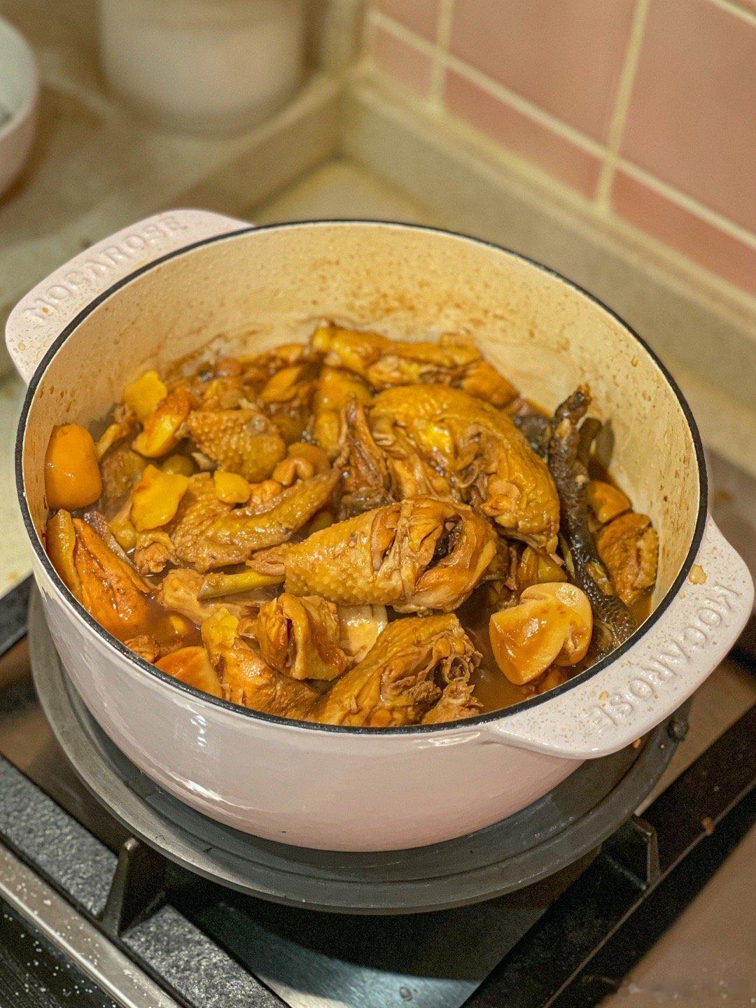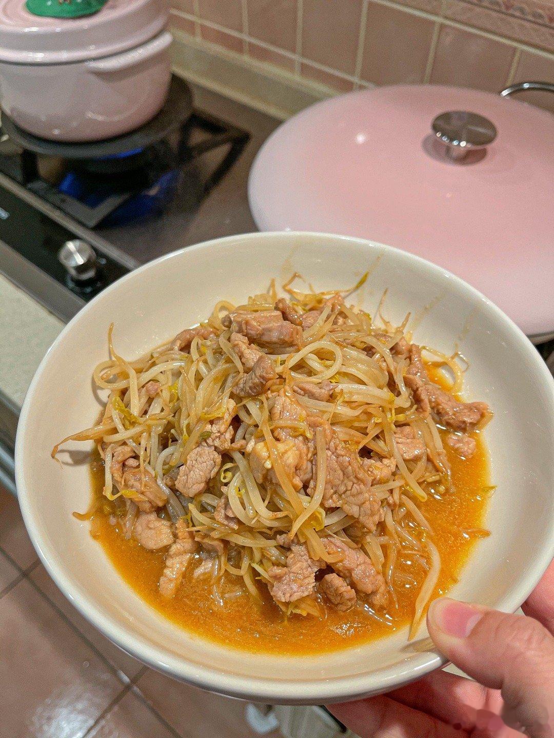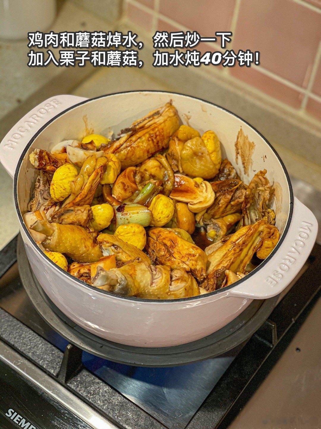 晚餐:栗子烧鸡+炒绿豆芽+炒油麦菜现在炒青菜可以用蒜末啦,铁锅爆炒,加什么青菜都