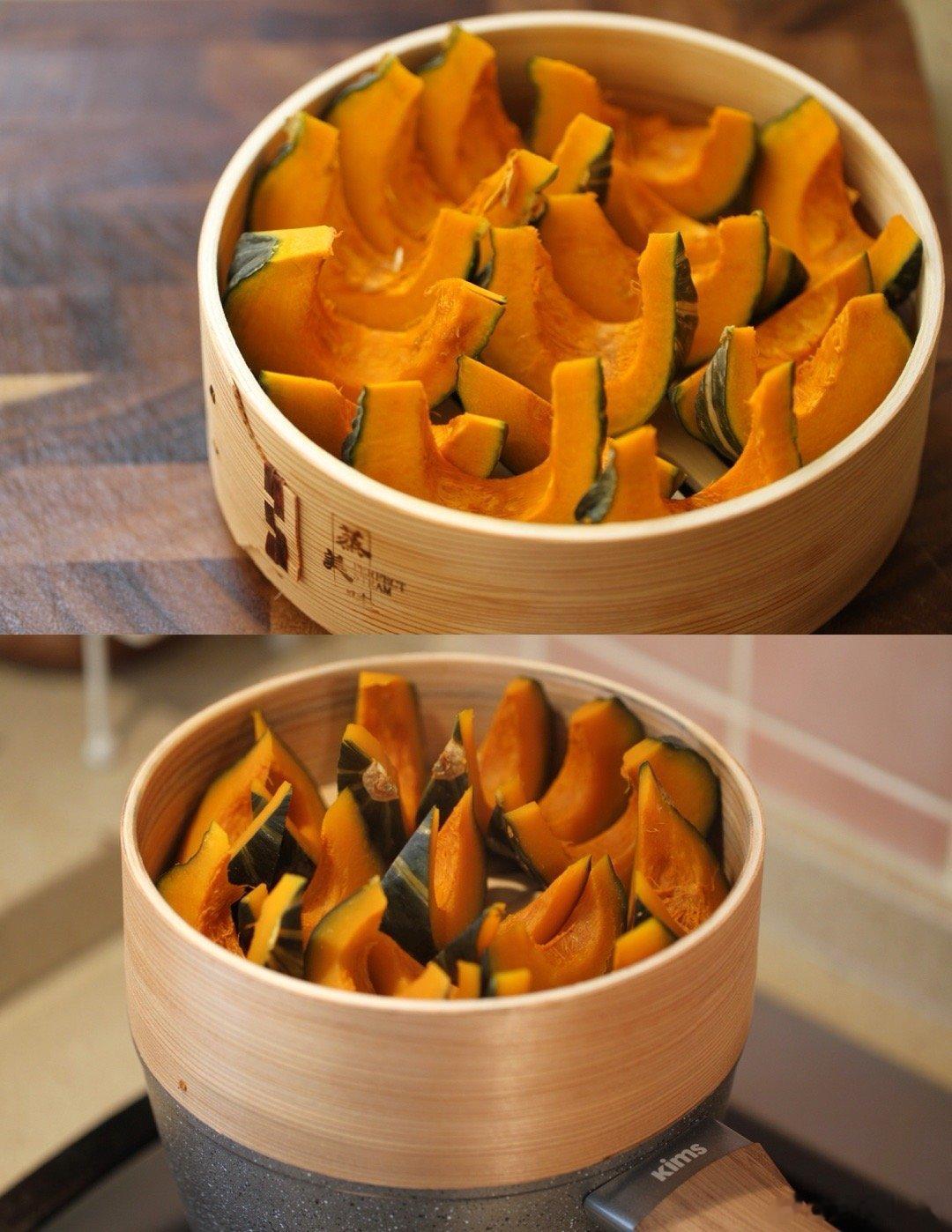 第一种蒸的方法,整个蒸30分钟就好,切开蒸15-20分钟。