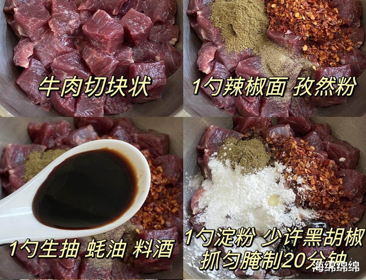 做这道菜,食材准备特别省心。去菜市场买一块新鲜的牛里脊(大概300克就够两人份),让摊主帮忙切成2厘米左右的小方块,回家用清水冲掉血水,沥干水分就行。重点在腌料:1勺辣椒面、1勺孜然粉是灵魂,喜欢辣的多放半勺辣椒面,喜欢香的可以加半勺五香粉;再来1勺生抽提鲜、半勺蚝油增稠、1勺料酒去腥,最后加1勺淀粉(玉米淀粉或土豆淀粉都行)抓匀,淀粉能让牛肉烤出来更嫩,不会干柴。抓匀后盖上保鲜膜,放冰箱腌20分钟,让牛肉吸饱料汁,这一步千万别偷懒,腌够时间才入味。