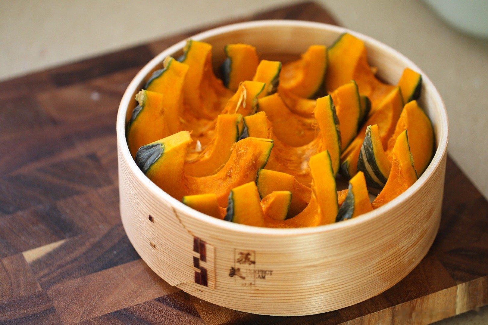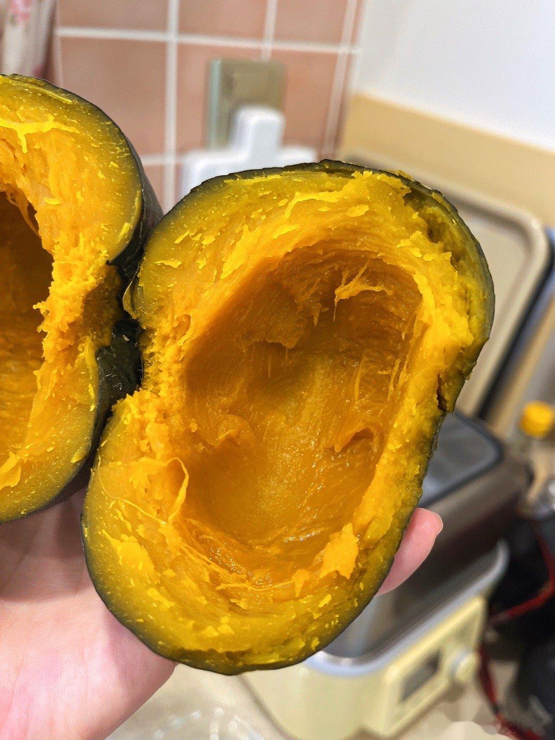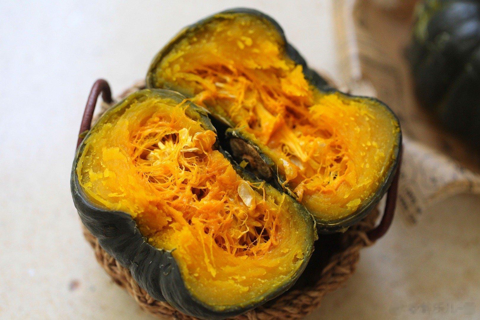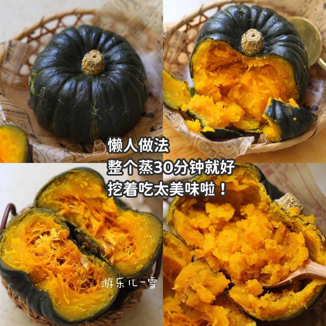 贝贝南瓜,甜甜面面的[耶]。现在每次蒸米饭时一起蒸个贝贝南瓜,乔乔特别喜欢吃。(