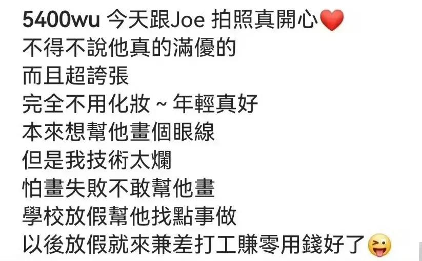#妙笔生花创作挑战#吴速玲带15岁的儿子joe拍写真大片,网友们看到纷纷表示,这真的是15岁吗? 视频中,joe穿着一套酒红色西装,露出一大片胸肌,看起来成熟男人味十足! 和妈妈吴速玲同框一点看不出年龄差,不得不说吴速玲确实很显年轻,有点网友还表示妈妈看起来比儿子更显小! 其实,joe毕竟才15岁,笑起来就是阳光大男孩的样子,表情还是有点羞涩的! 吴速玲对儿子的表现十分满意,发文称儿子很优秀,而且拍摄也是因为joe学校放假,怕他太无聊,所以给他找点事情做!#娱乐圈热门话题# #娱乐说真话# #女星是我妈妈#