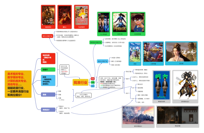 从行业上分,可以分为5大行业:电影电视、动画片、游戏、漫画、传统设计;