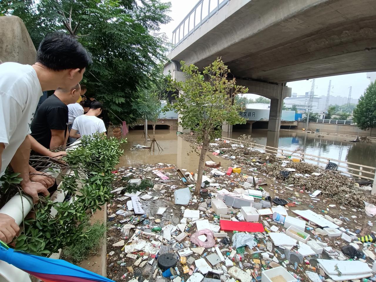 #河南暴雨感人瞬间# 今天郑州终于没有下雨了,道路上的积水基本上也退了,涵洞里还