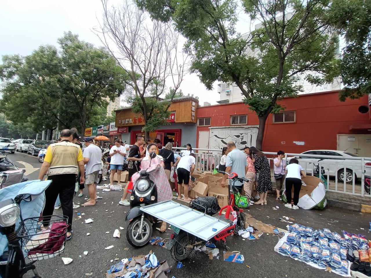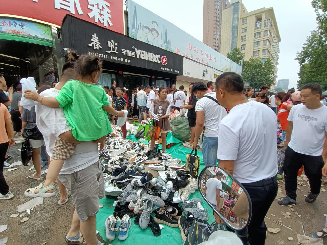 今天郑州终于没有下雨了,道路上的积水基本上也退了,涵洞里还有少部分积水正在往外抽,商家损失惨重,路过鞋城,都在便宜处理泡水的鞋,买的人很多