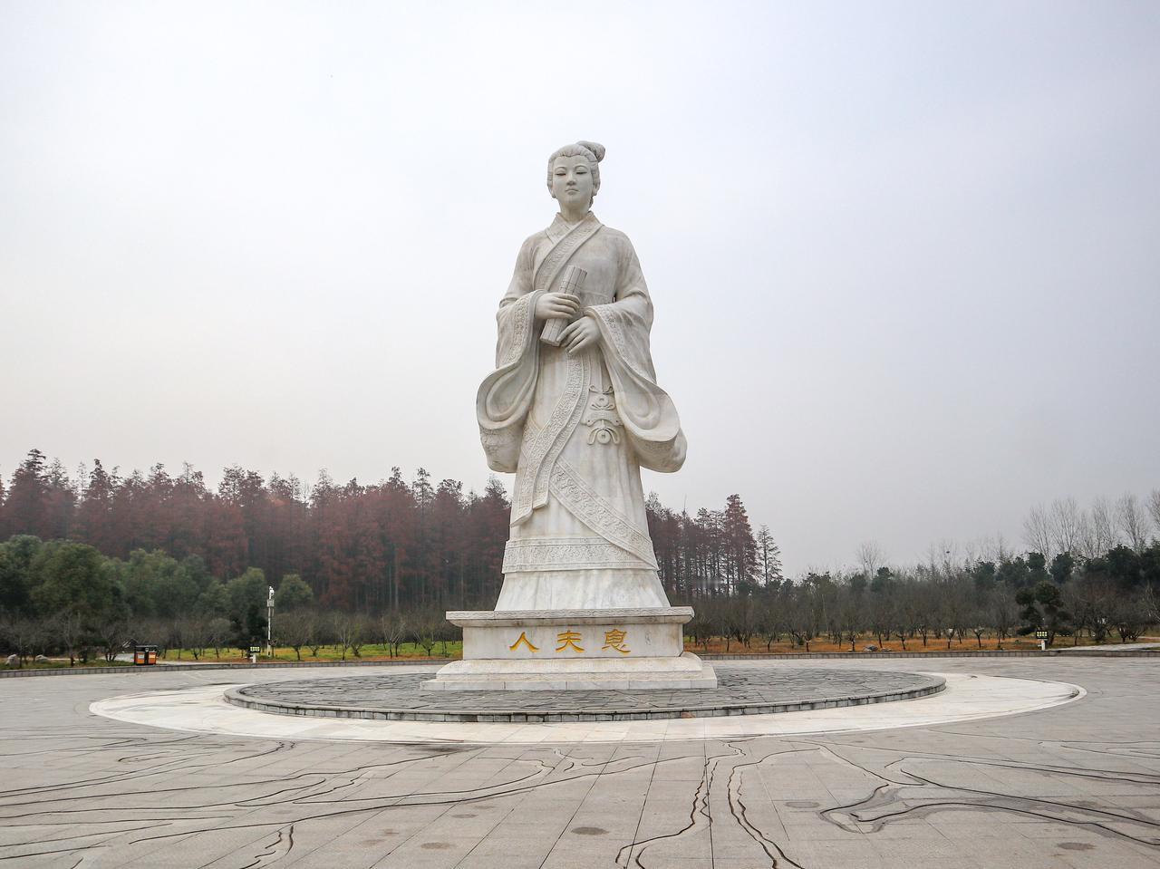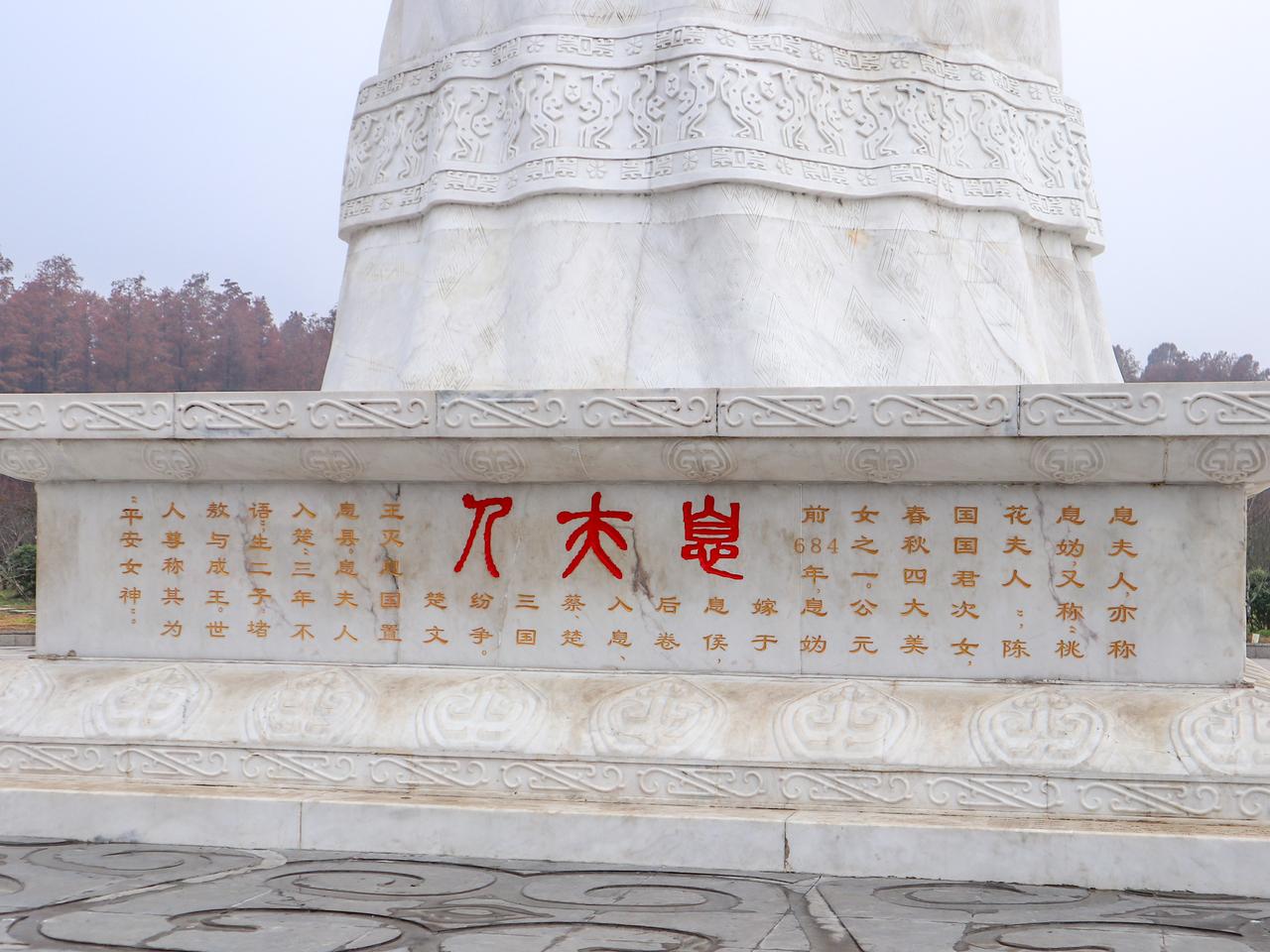 园内还有一尊息夫人的塑像,息夫人又称桃花夫人,春秋四大美女之一,生于陈国宛丘(今河南省淮阳县),妫姓。后因息、蔡、楚三国纷争,楚文王灭息国,置息县。息夫人入初三年不语,生二子堵敖于成王。世人因其贤良,尊称她为“平安女神”