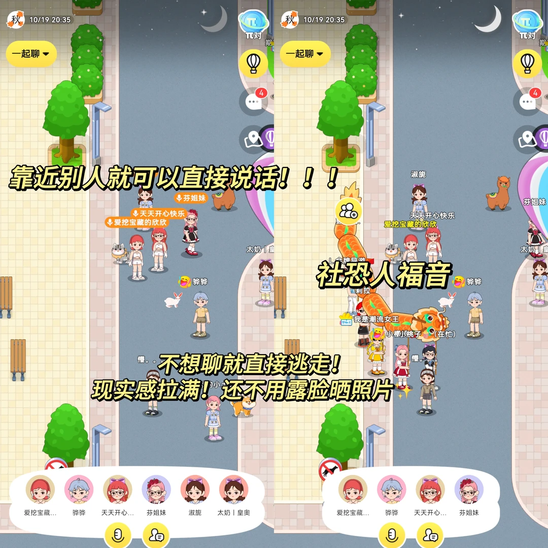 🌷最重要的是不!露!脸!在这里可以做自己,不用匹配,两个人只要靠近就能聊天,真实感满满