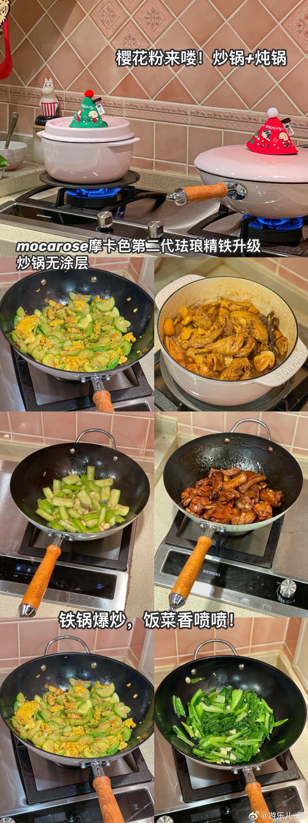 [哇]超级貌美的铁锅!还有最新樱花粉,物理防粘+不易粘锅 。