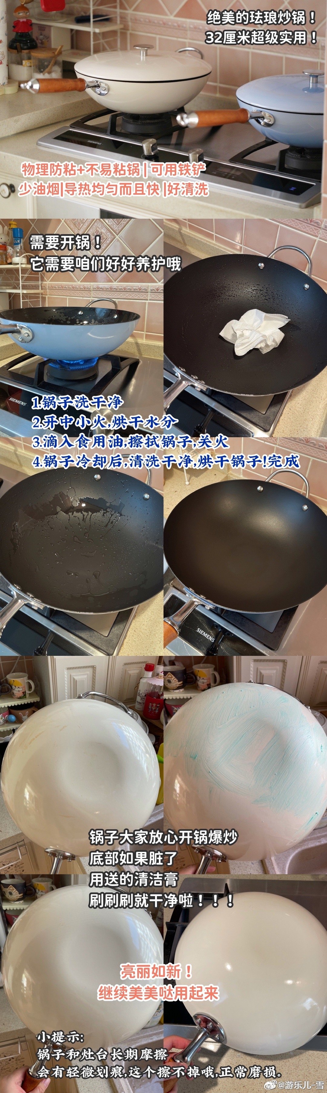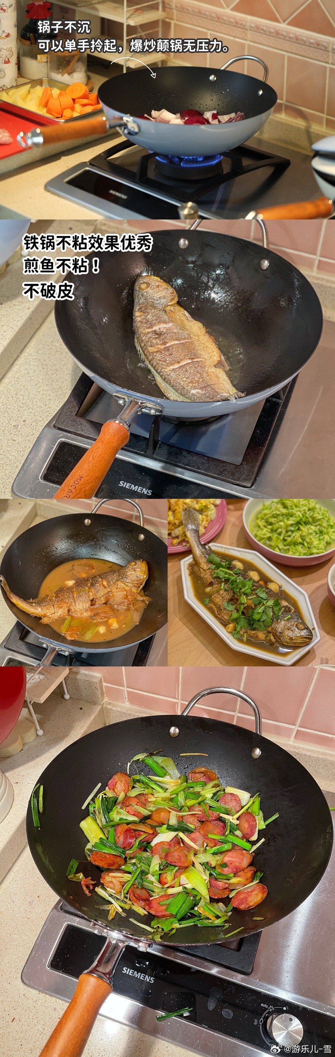 少油烟|导热均匀 |好清洗,32cm翻炒方便实用,可以使用铁铲,钢丝球清洗。锅底脏了不用担心,用清洁膏一擦就变美了,非常好打理。